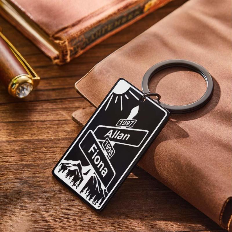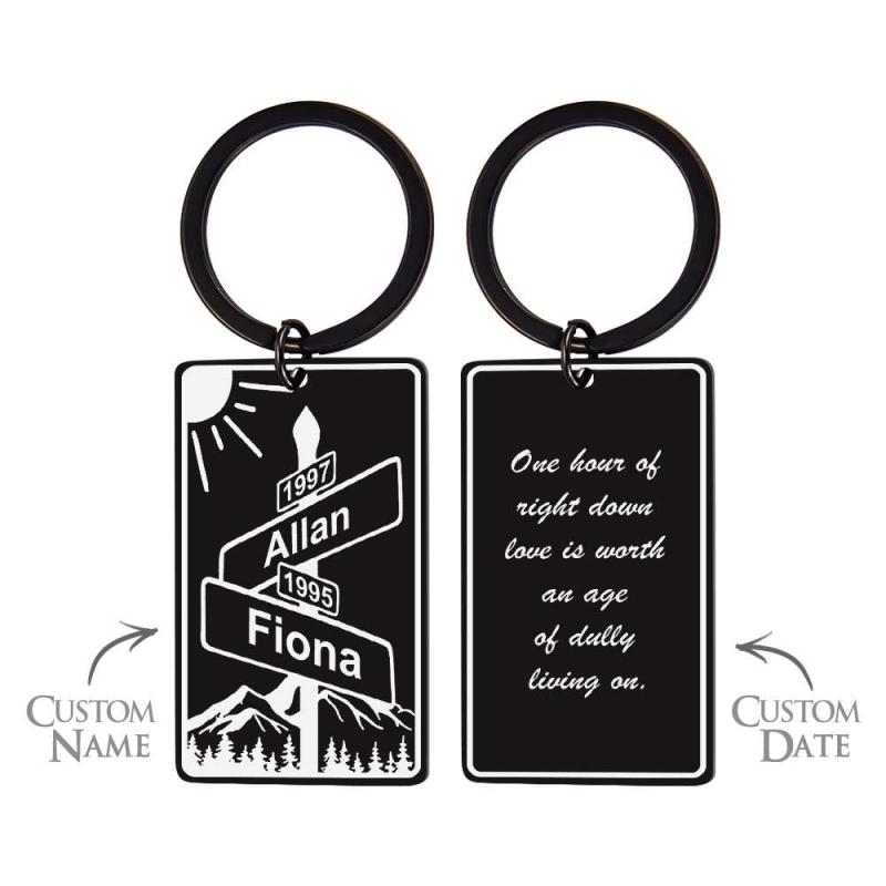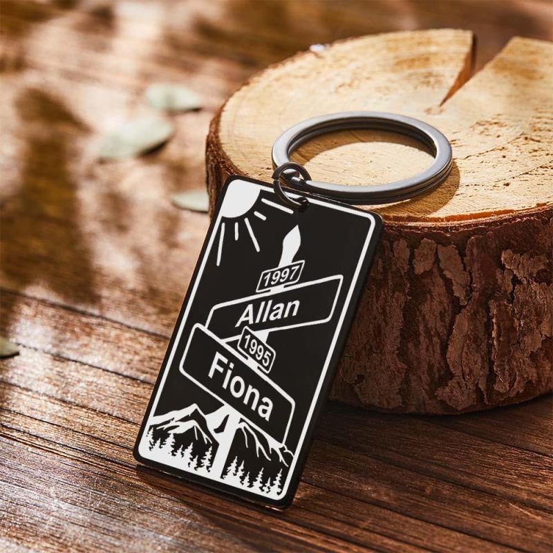 Custom Name Text Street Sign Keychain Personalized Intersection of Love Anniversary Gift For Couples