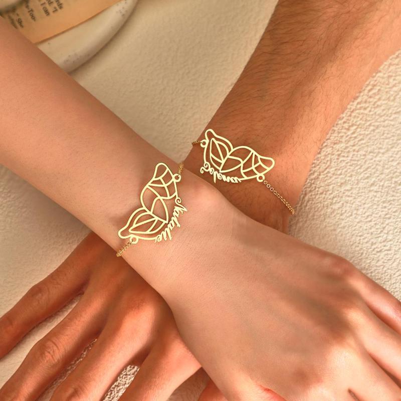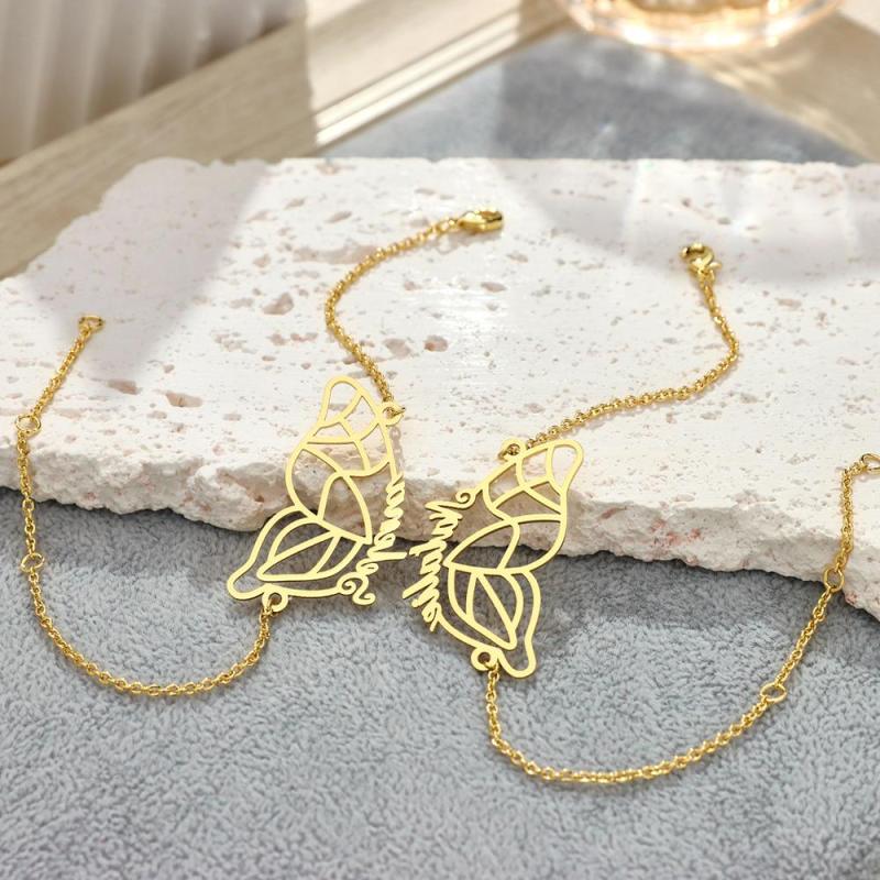 Custom Name Two Butterfly Bracelets Romantic Couple Gift
