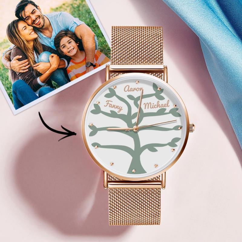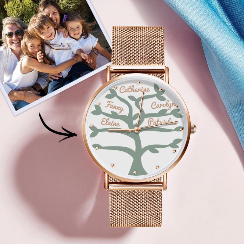 Custom Name Watch Women's Rose Gold Alloy Bracelet Watch 36mm for Family (1-9 Names)