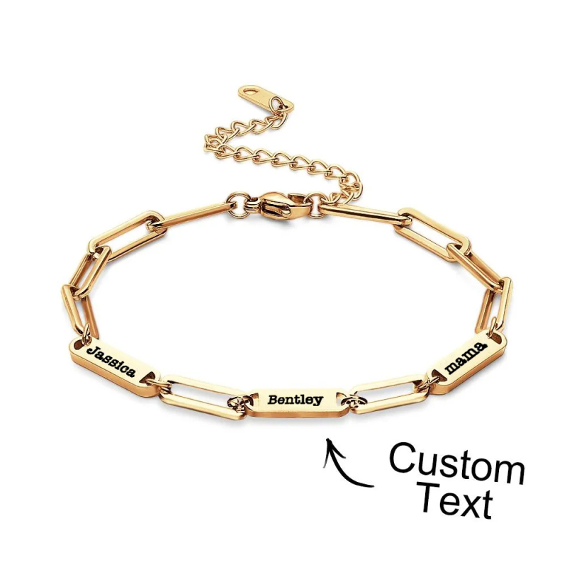 Let mom and grandma know how much they mean, by gifting them a Custom Names Bracelet! Choose from three bold hues, and engrave up to seven names. Square shape joint connecting bracelet constructed in stainless steel for lasting wear. Celebrate family with an unforgettable gift!