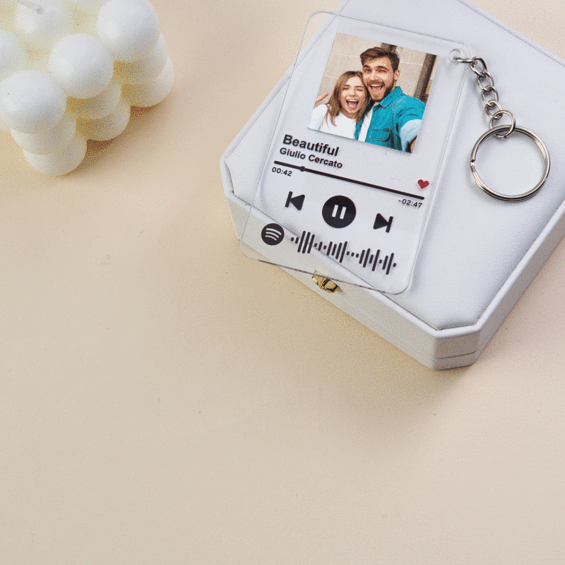 - Customizable: Select your song and photo to be embedded as a Spotify Code on the keychain.