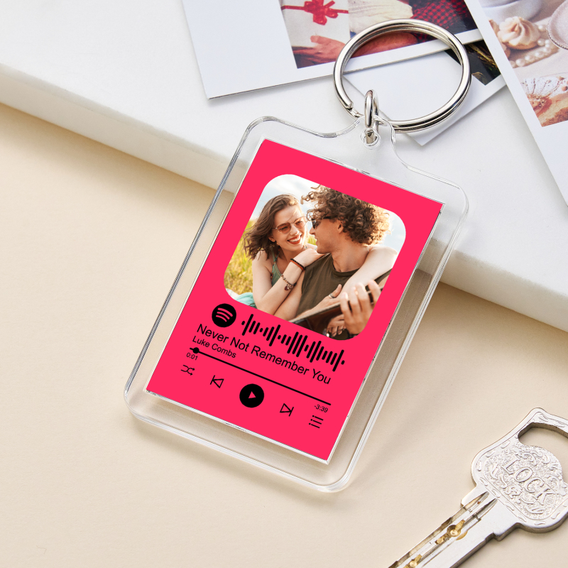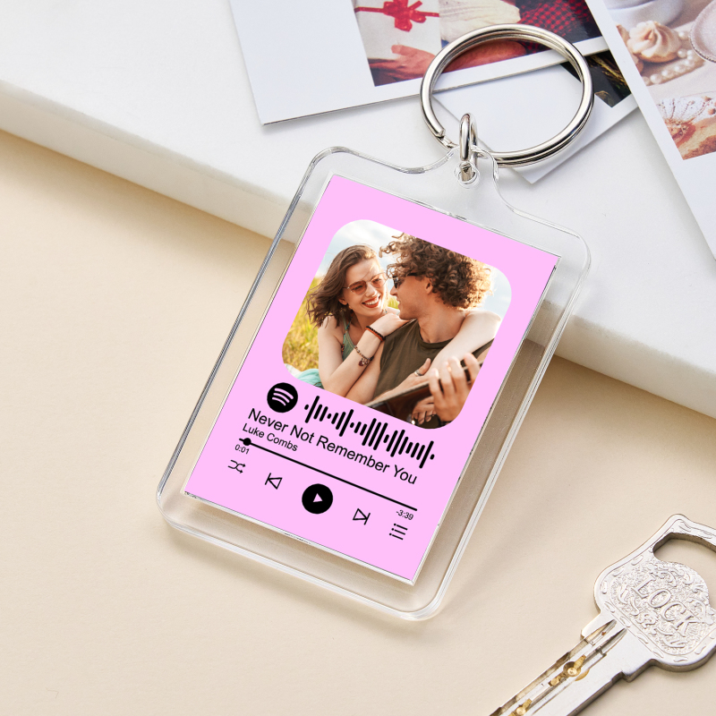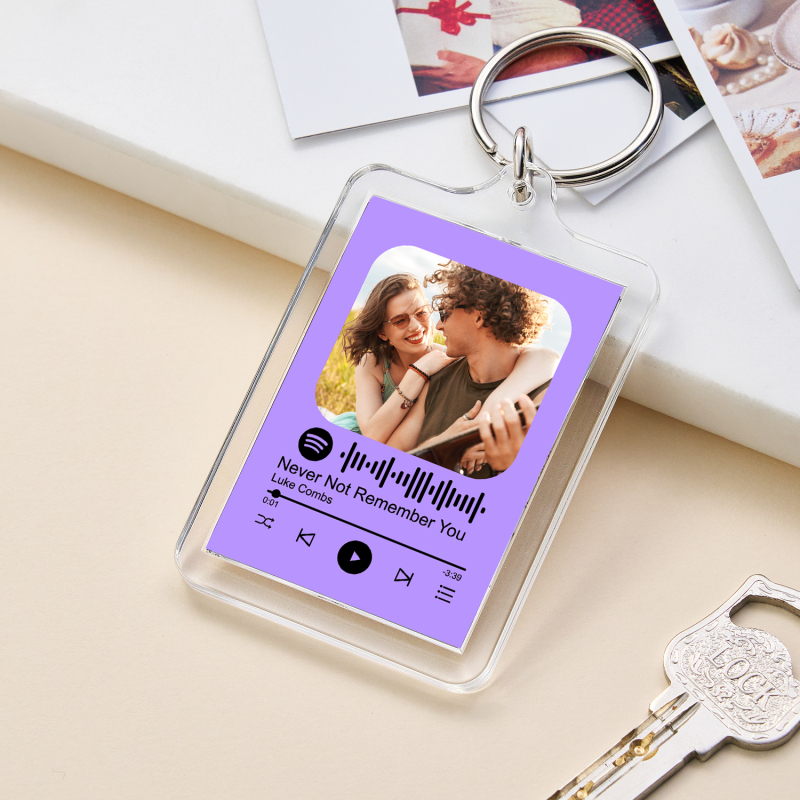 - Customizable: Select your song and photo to be embedded as a Spotify Code on the keychain.