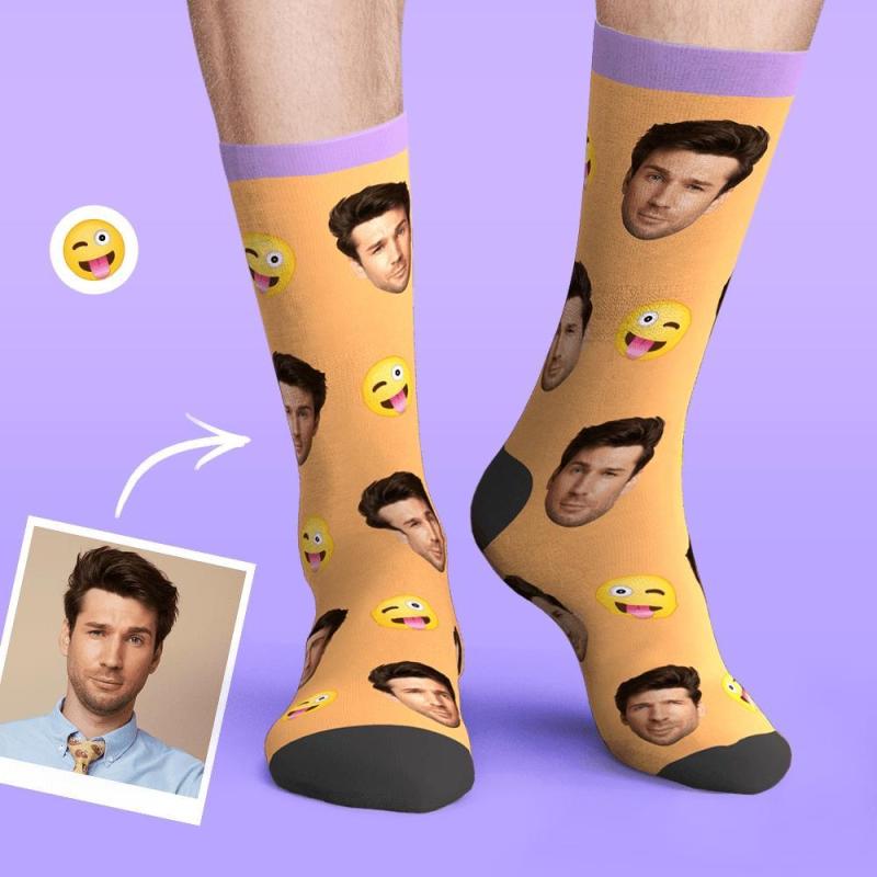 Custom Personalized Photo Funny Emoticons Face Socks Naughty