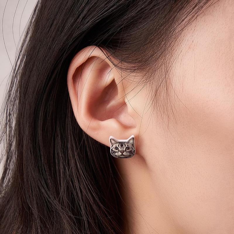 Capture the heart of any pet owner or lover with our custom pet face earrings! Personalize these 925 sterling silver ear studs with a photo of their beloved companion, making them the perfect gift. Not only are they adorable and unique, but also hypoallergenic for sensitive ears. Show your love for pets in style!