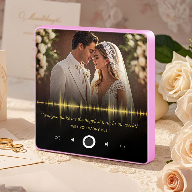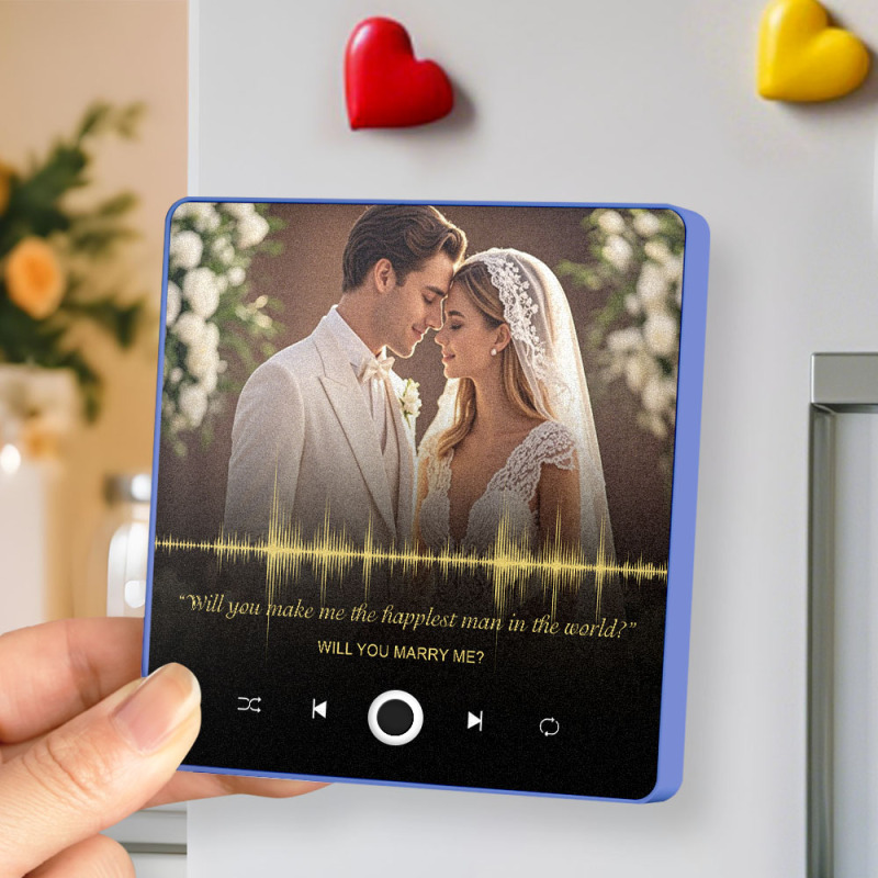 Celebrate your love with a unique and heartfelt proposal gift. This custom photo and audio fridge magnet lets you capture and replay the beautiful sound of your proposal or any special moment. A lasting keepsake to cherish forever, bringing your love story to life with both images and sound.