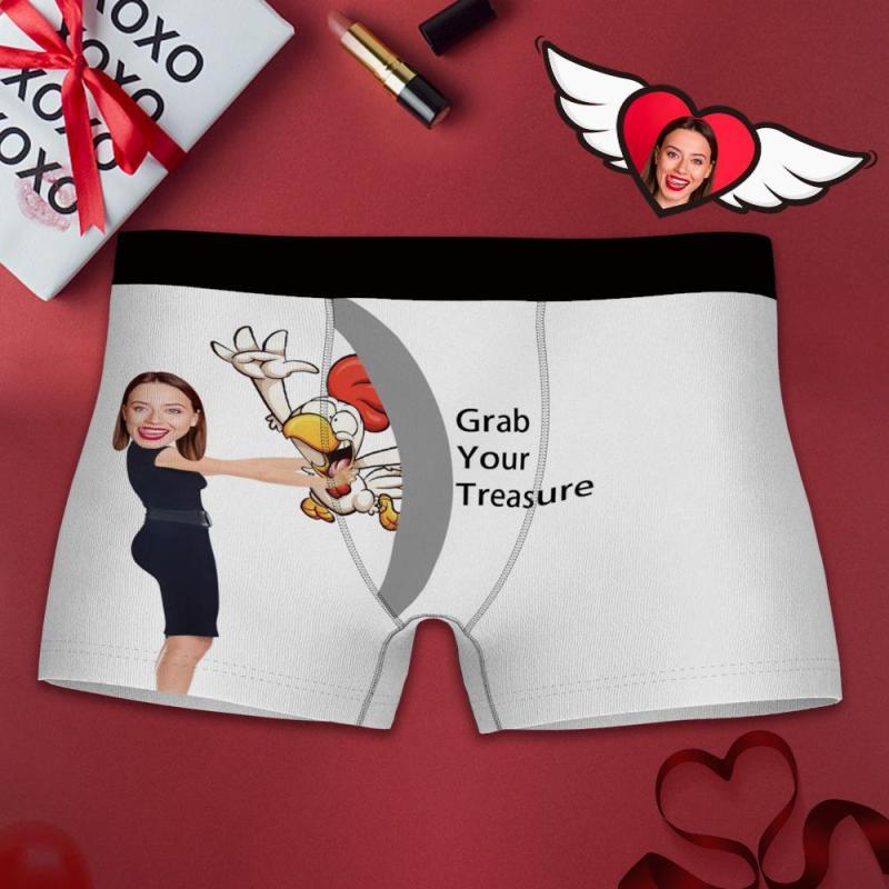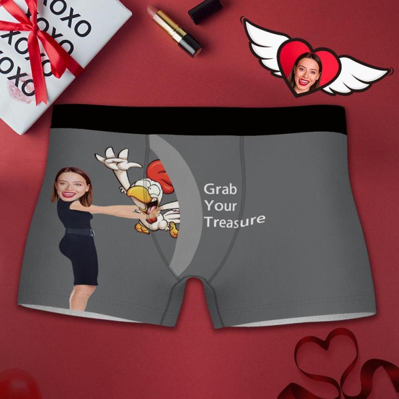 Custom Photo Boxer, Funny Face Boxer Grab Your Treasure - Men's