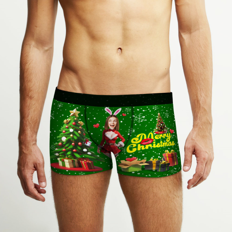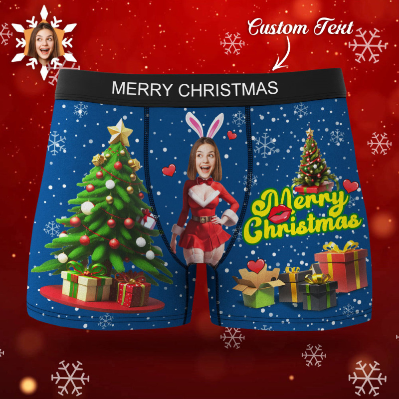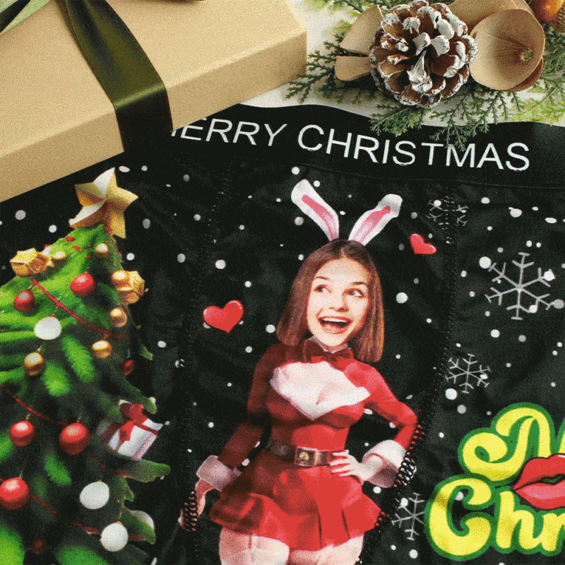 Custom Photo Boxer Santa Bunny Girl Face Underwear Couple Gifts Christmas Gift AR View