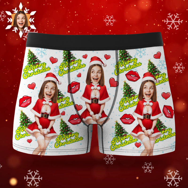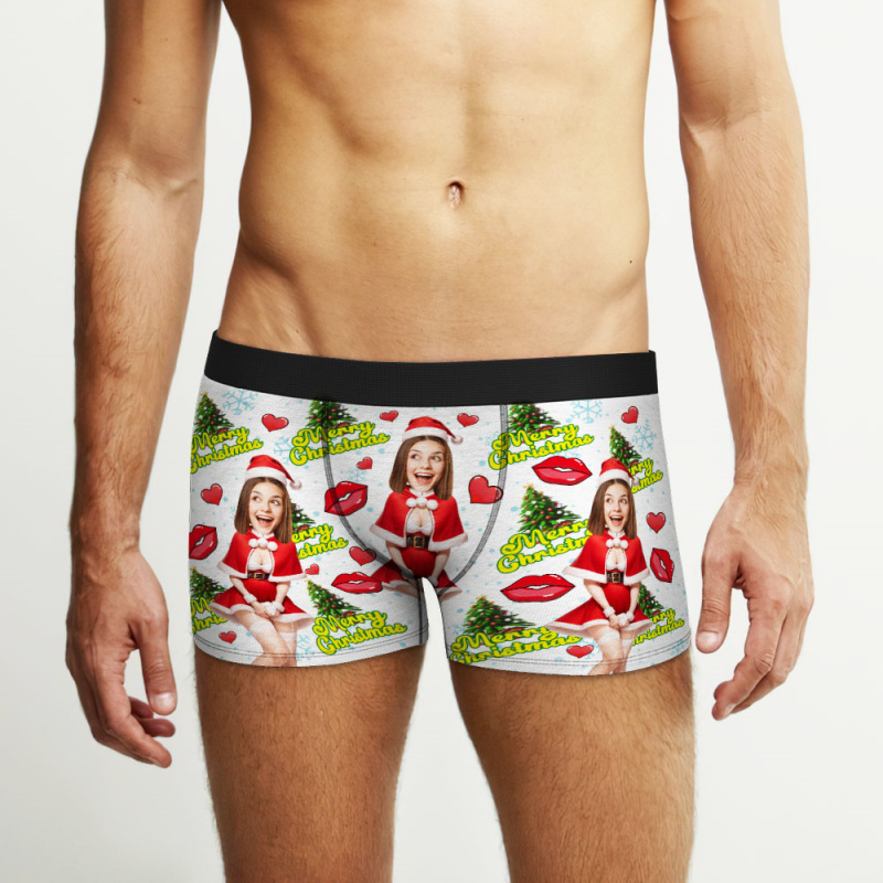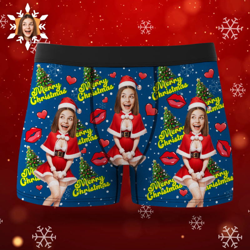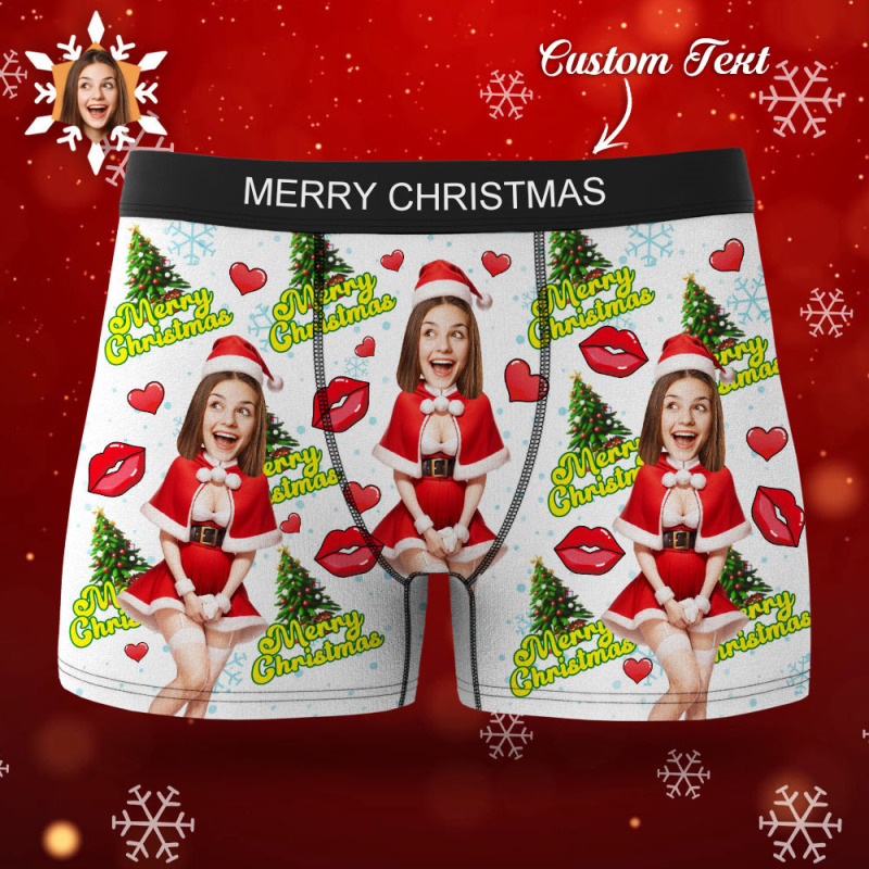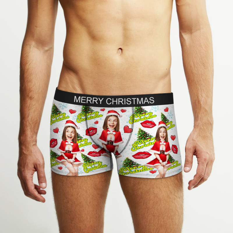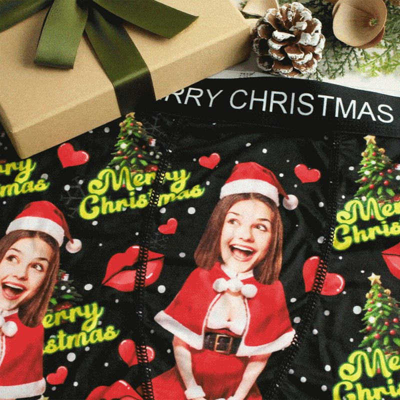 Custom Photo Boxer Santa Woman Face Underwear Couple Gifts Christmas Gift AR View