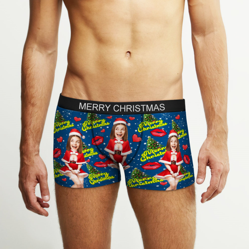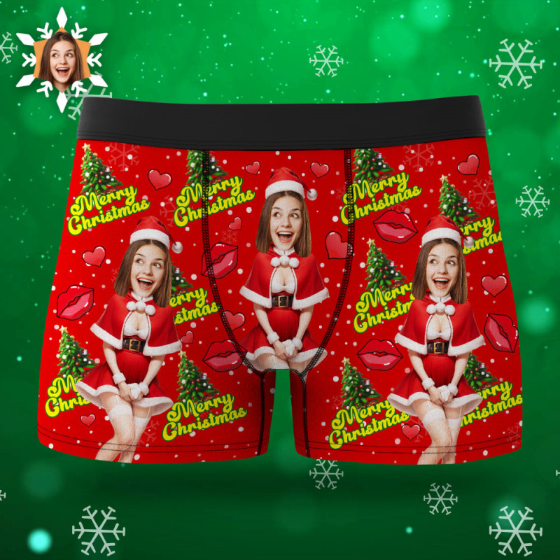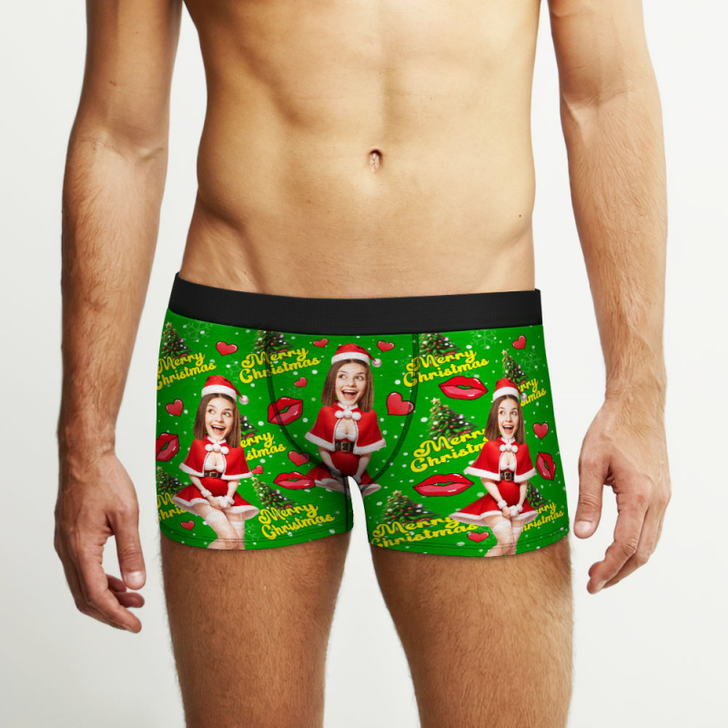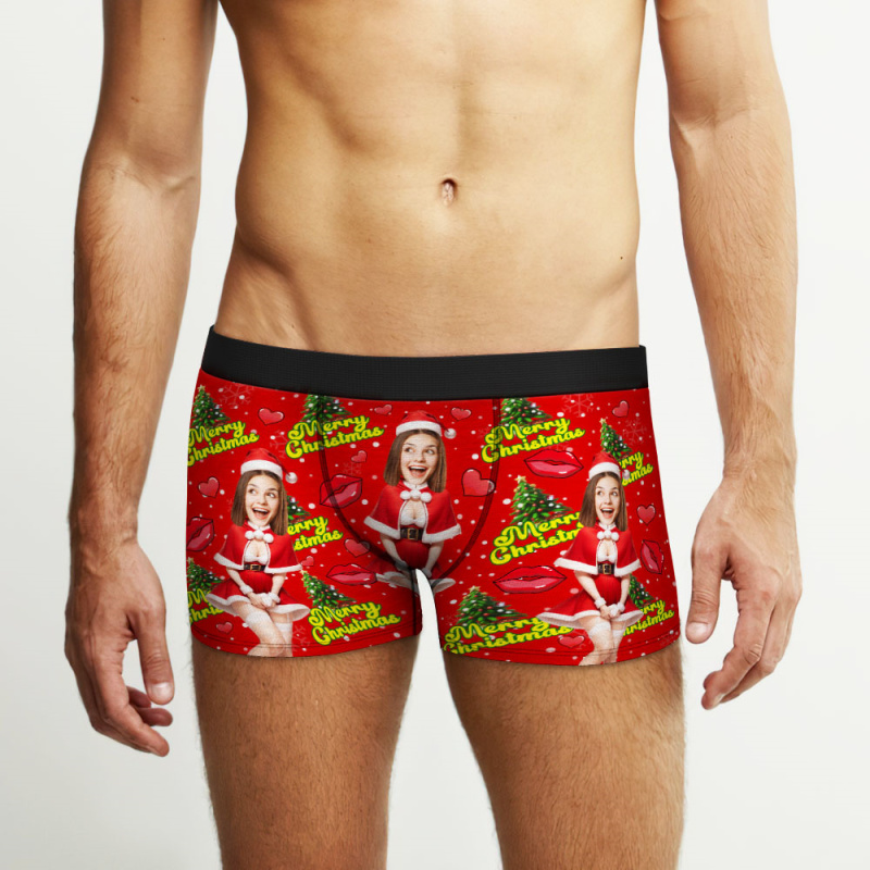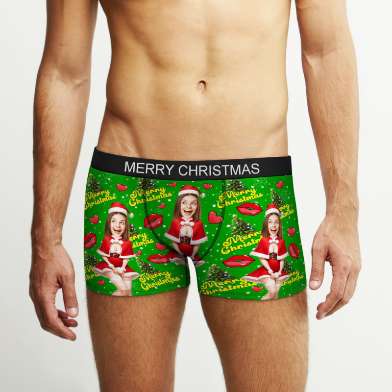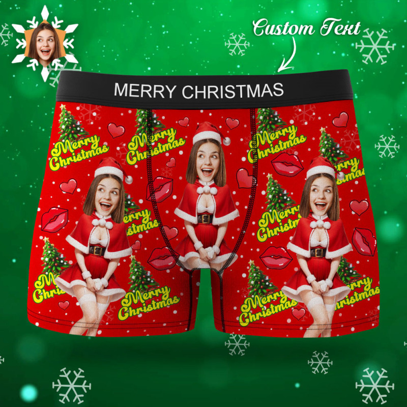 Custom Photo Boxer Santa Woman Face Underwear Couple Gifts Christmas Gift AR View