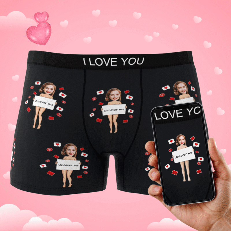 Custom Photo Boxer Uncover Me Underwear Men's Underwear Gift For Boyfriend AR View Valentine's Day Gift