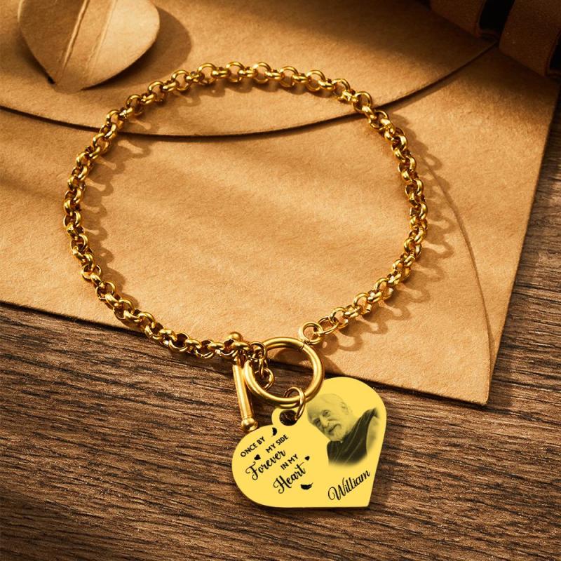 Custom Photo Bracelet with Heart Memorial Engraved Bracelet Engraving Stainless Steel Bracelet