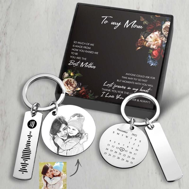 Custom Photo Calendar Spotify Keychain Stainless Steel Key Chains Gift For Mom