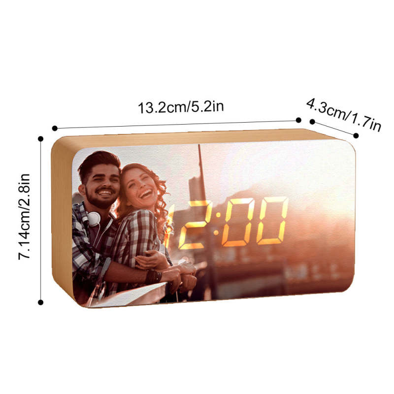 This custom photo wooden alarm clock is the perfect gift for any celebration, whether it's a housewarming, graduation, birthday, anniversary, or just a special treat for yourself. With the ability to print your own photo and personal text on the clock, it's a truly unique and personalized gift.