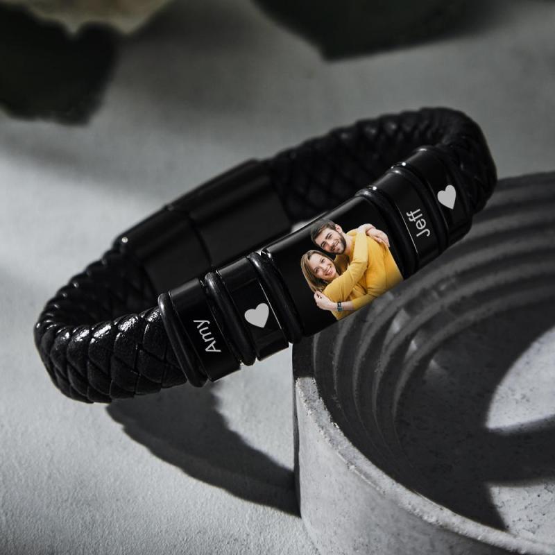 Custom Photo Engraved Bracelet Leather Bracelet Men's Bracelet Gifts for Him