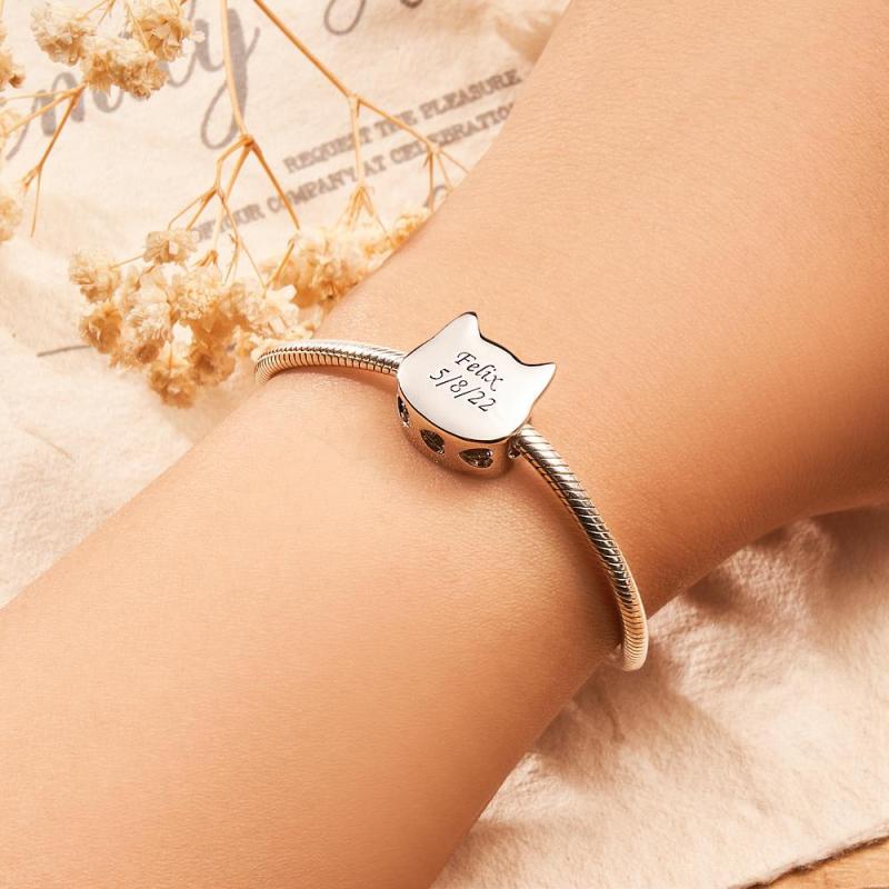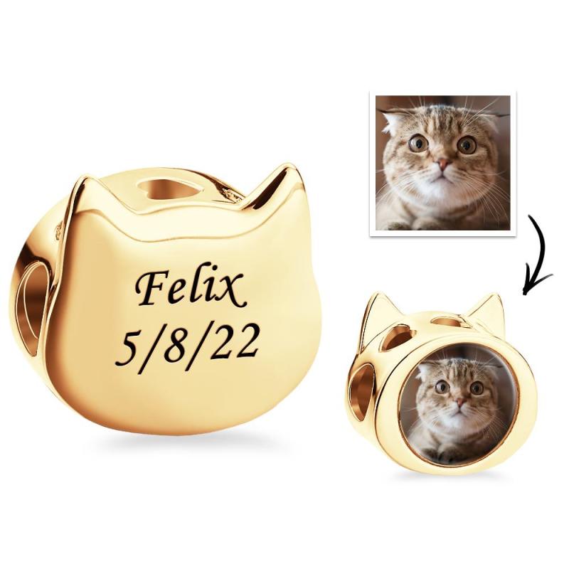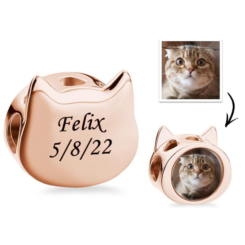 Custom Photo Engraved Charm Cute Cat Gift for Pet Owners