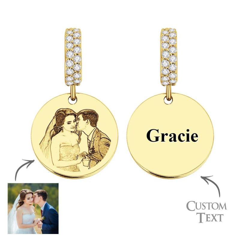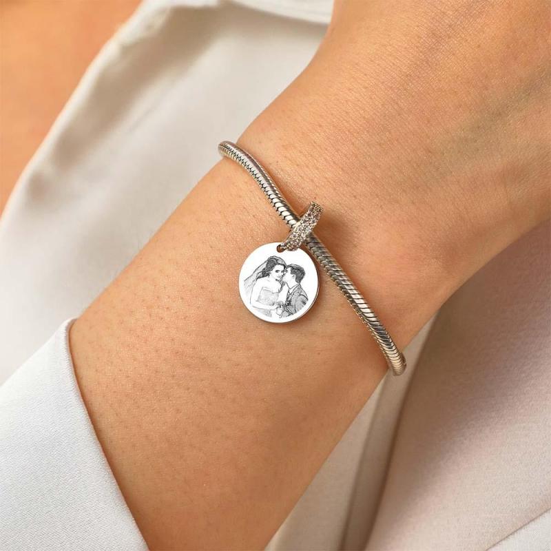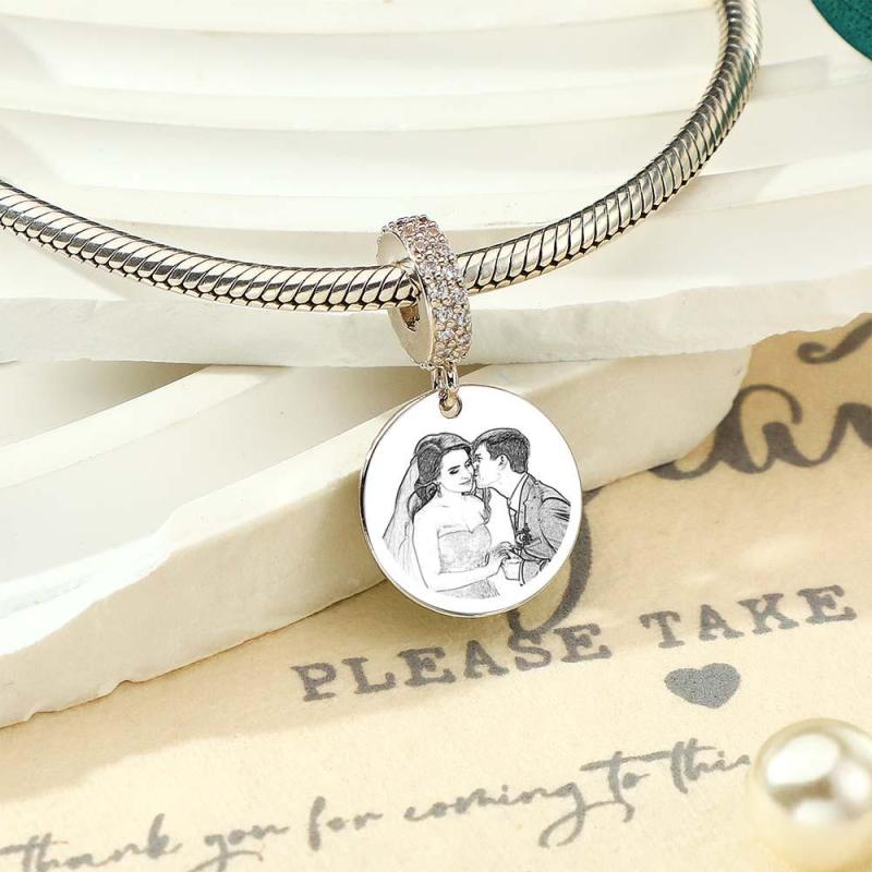 Custom Photo Engraved Charm Diamond Swing Couple Gift