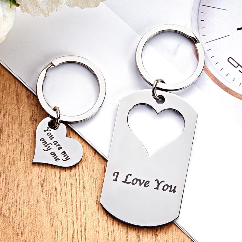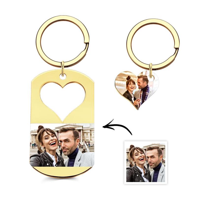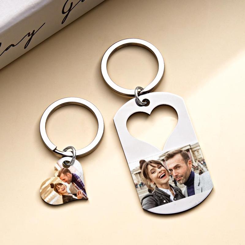 Custom Photo Engraved Keychain Creative Heart A Pair Couple Gifts