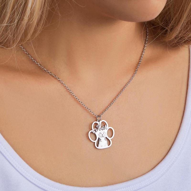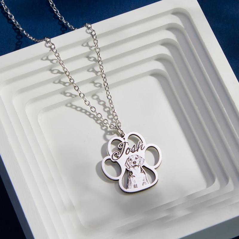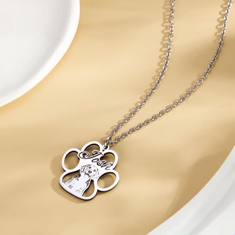 Custom Photo Engraved Necklace Creative Footprints Gifts for Pet Owners