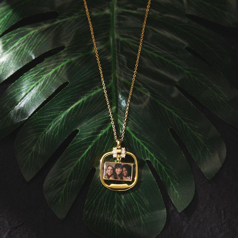 Custom Photo Engraved Necklace Personalized Pendant Necklace with Crystal Christmas Gift for Her