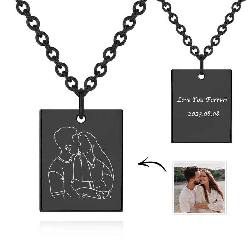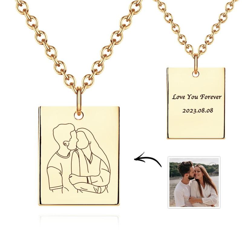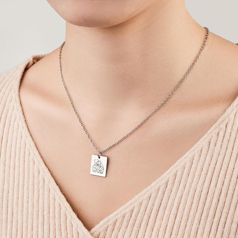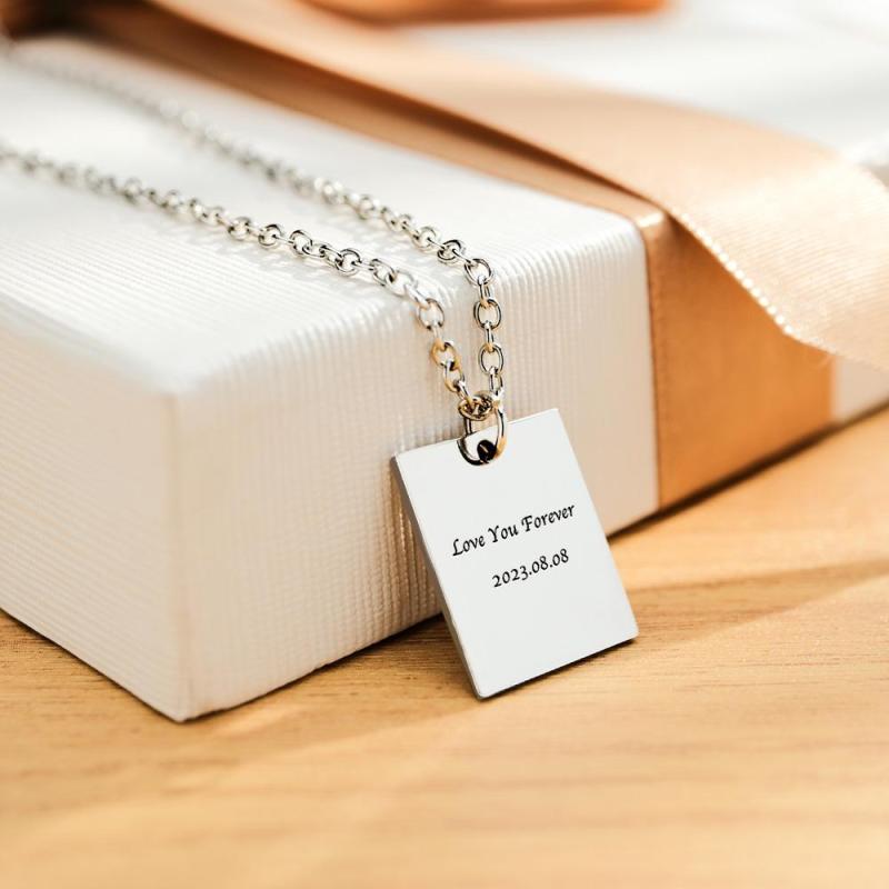 Custom Photo Engraved Necklace Rectangle Shape Commemorate Gifts for Women
