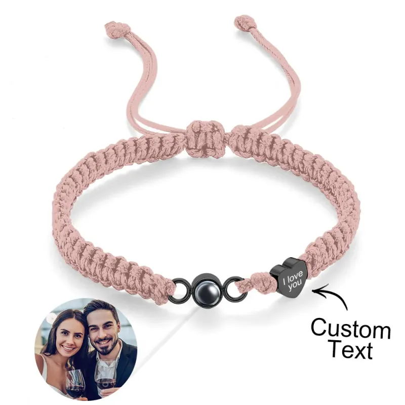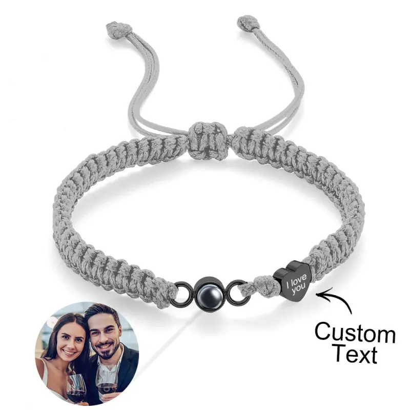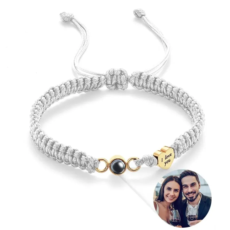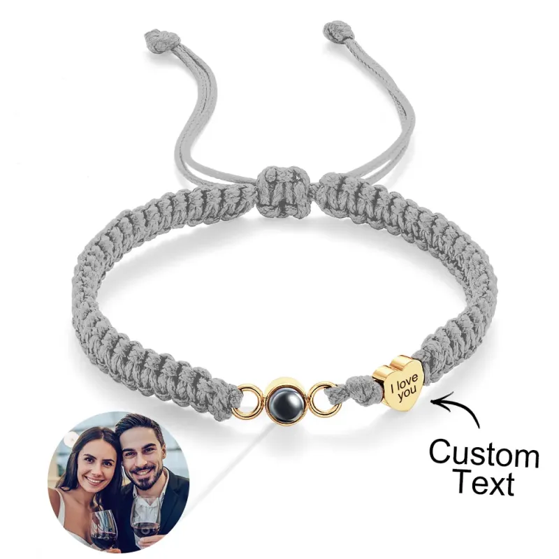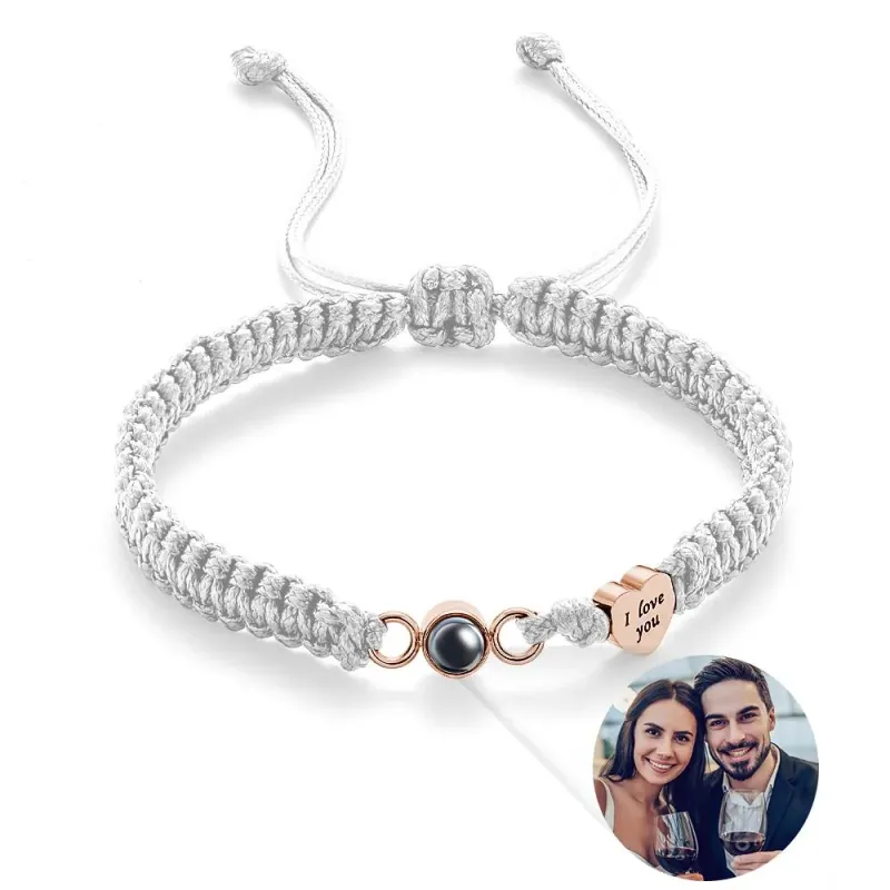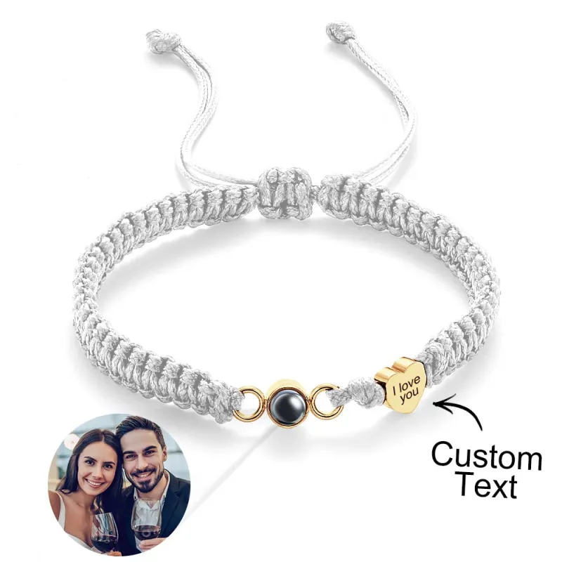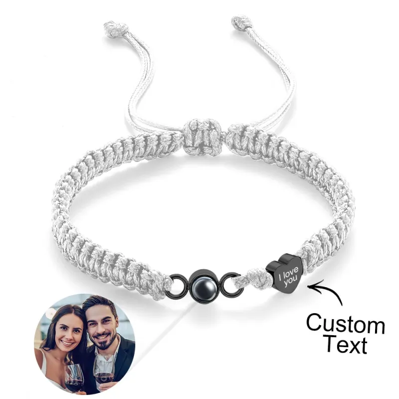 Custom Photo Engraved Projection Bracelet Heart Couple Gift