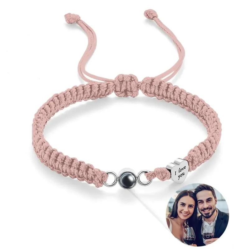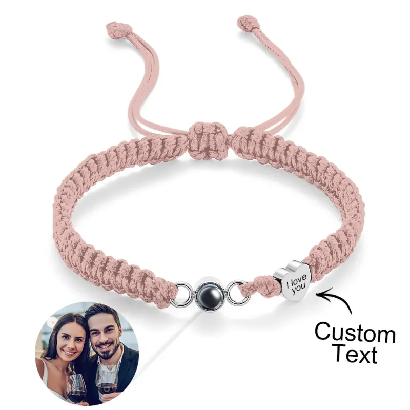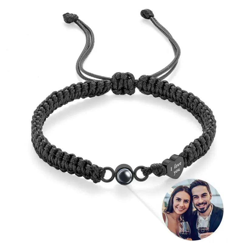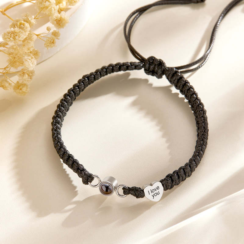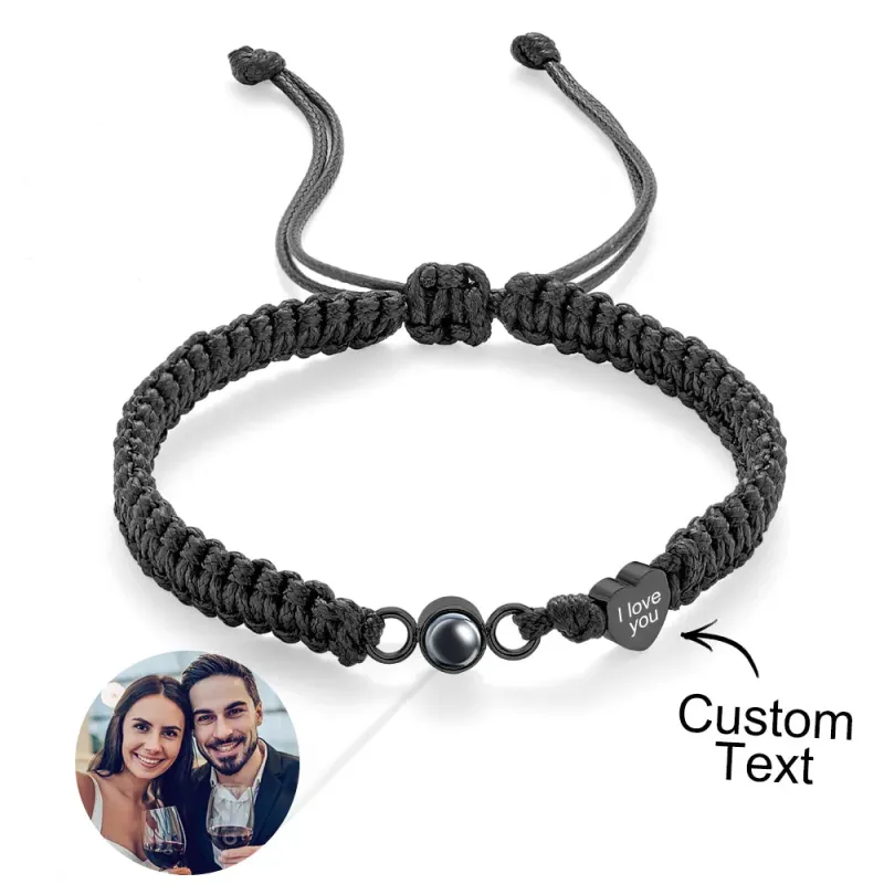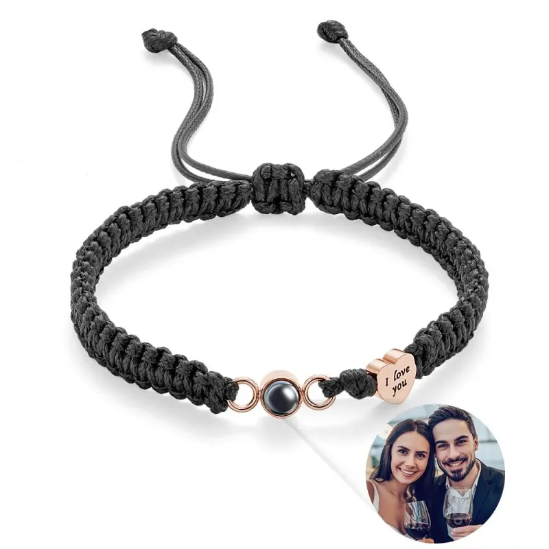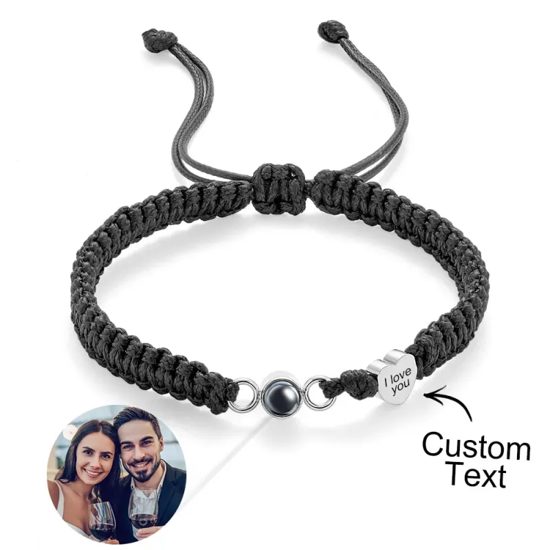 Custom Photo Engraved Projection Bracelet Heart Couple Gift