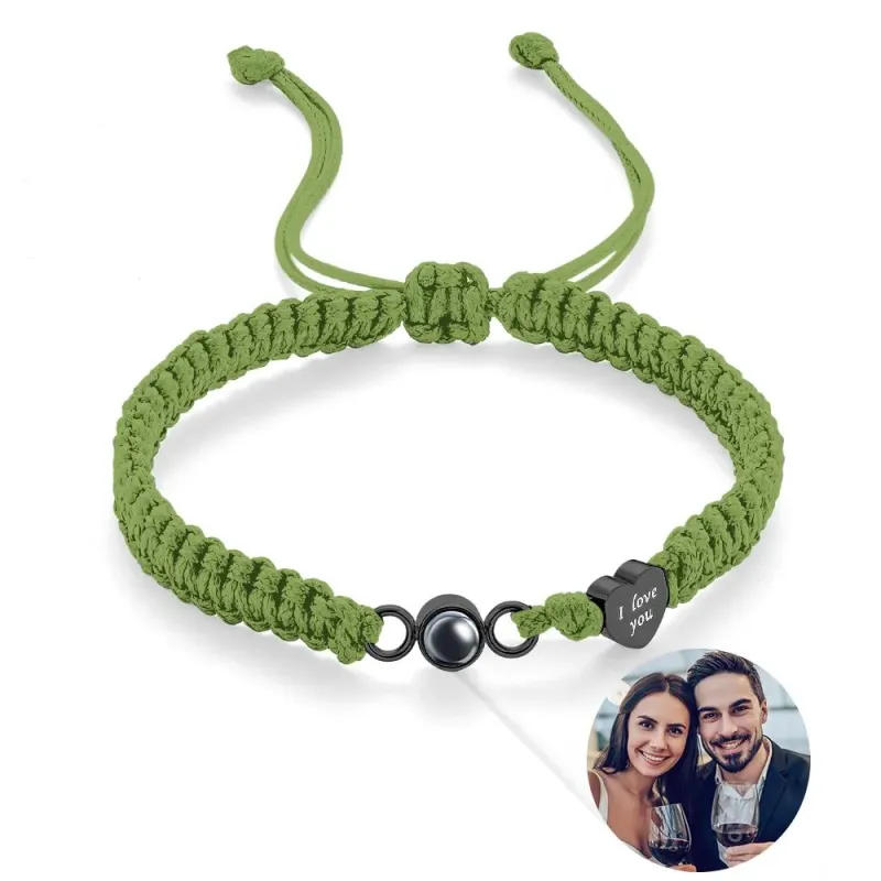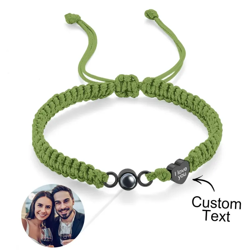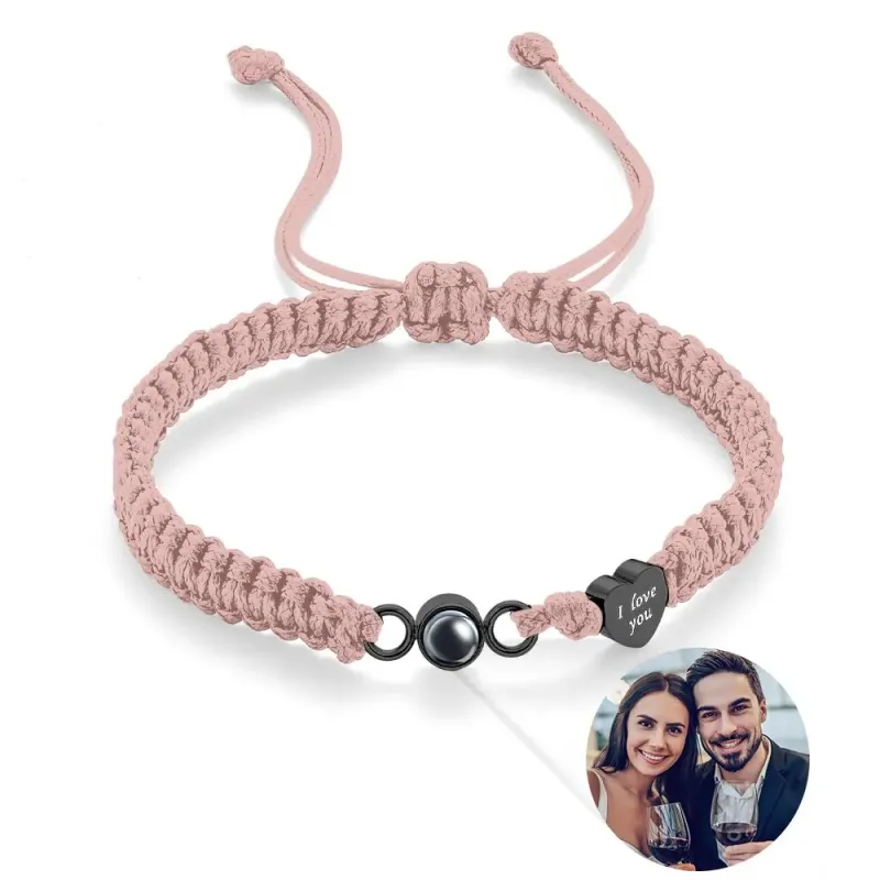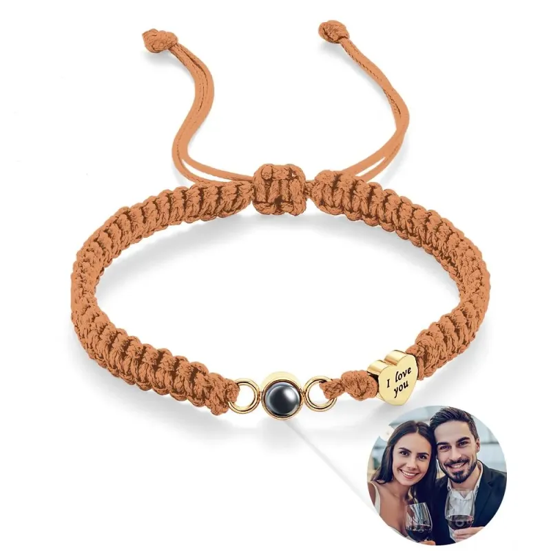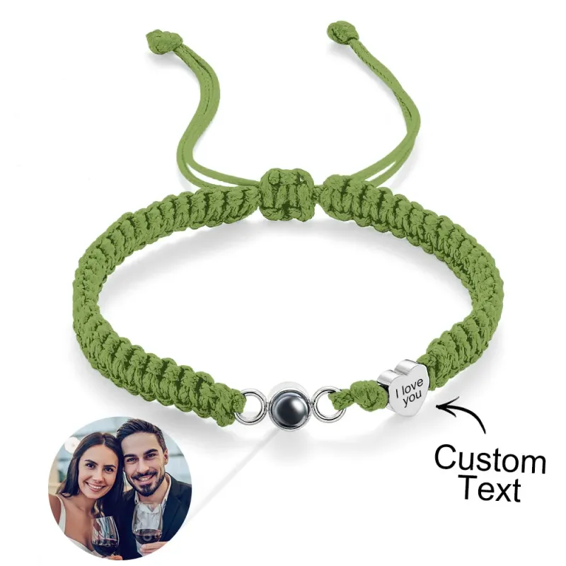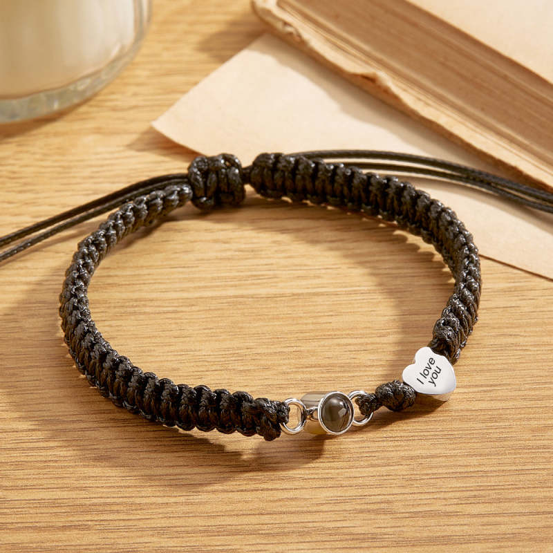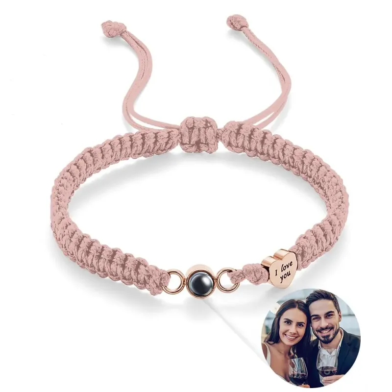 Custom Photo Engraved Projection Bracelet Heart Couple Gift