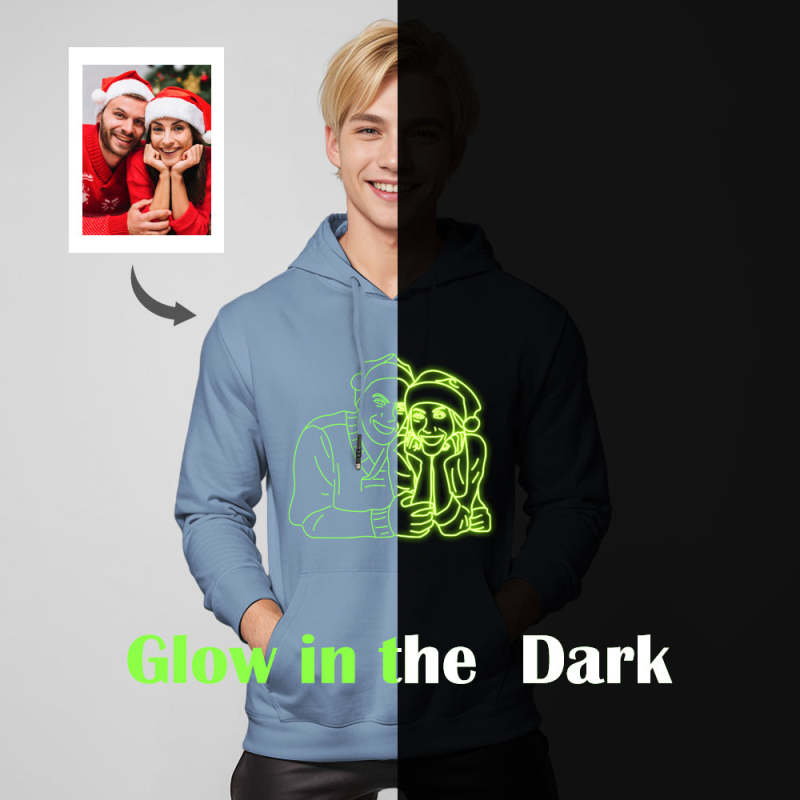 Transform your favorite photos into a mesmerizing display of colors that truly pop in the dark. Our advanced glow-in-the-dark ink ensures that your memories shine bright, creating a stunning visual impact. Whether it's a snapshot from a special occasion, a candid moment with loved ones, or a breathtaking landscape, this hoodie turns your memories into wearable art.