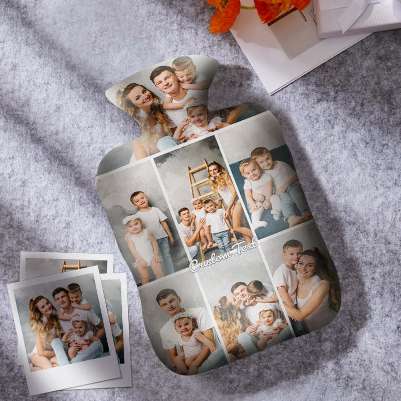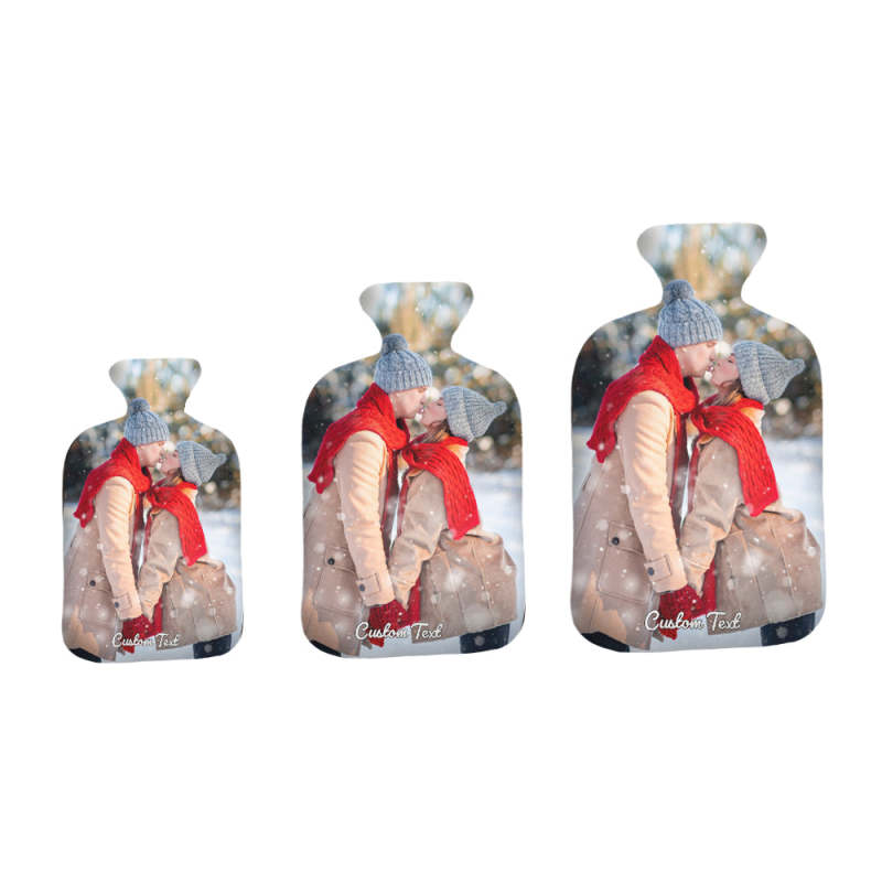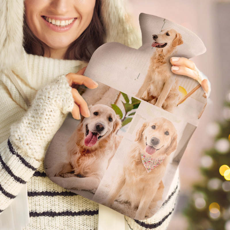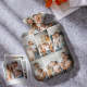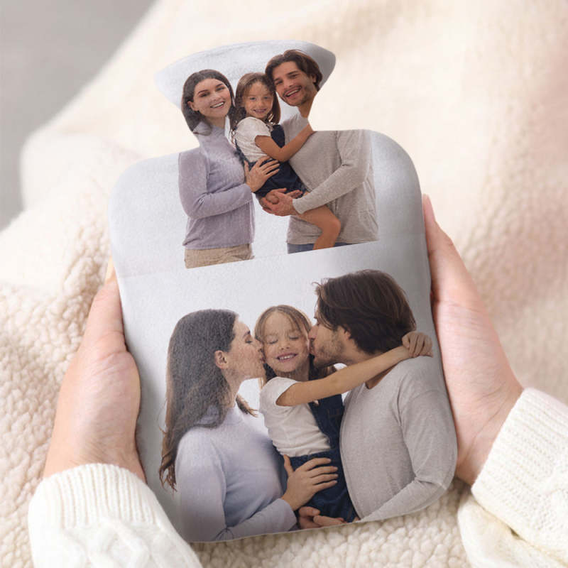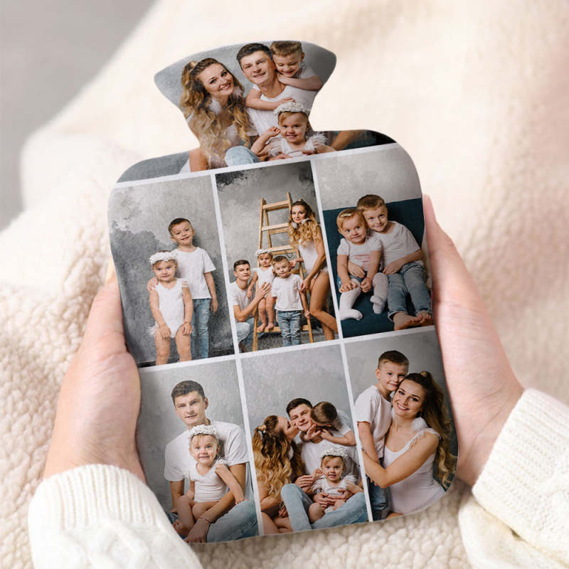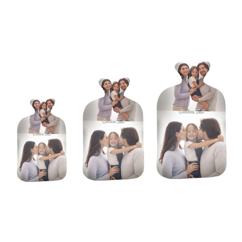 Luxury soft fabric hot water bottle cover printed with your photos to the front and back of the cover and comes with a free rubber hot water bottle to keep you warm at night. Beautifully soft and gentle to touch, you'll be ushering on the cold weather just so you can use your personalised hot water bottle with cover.