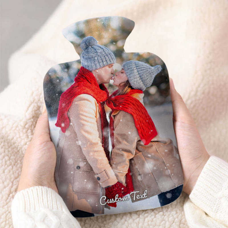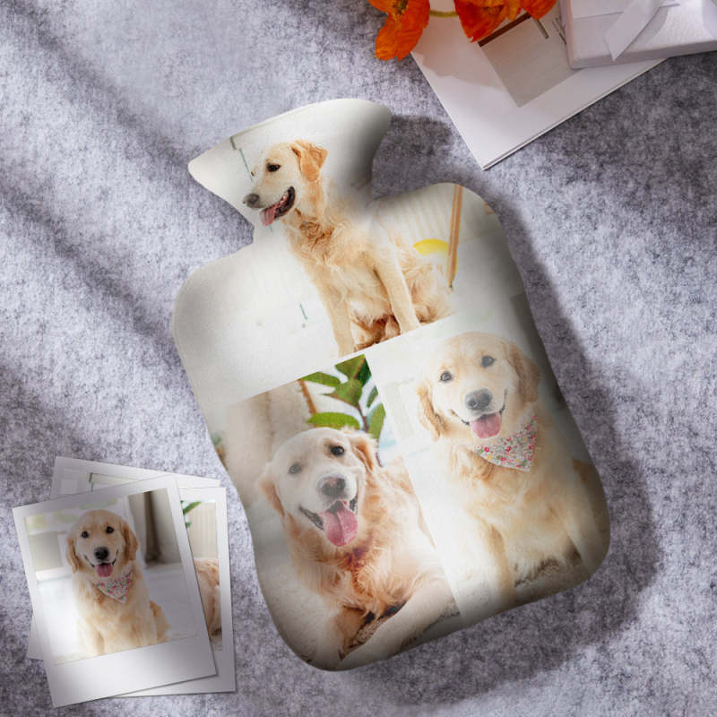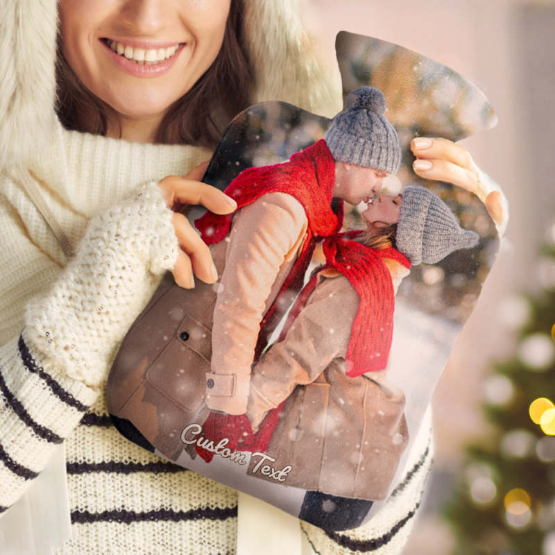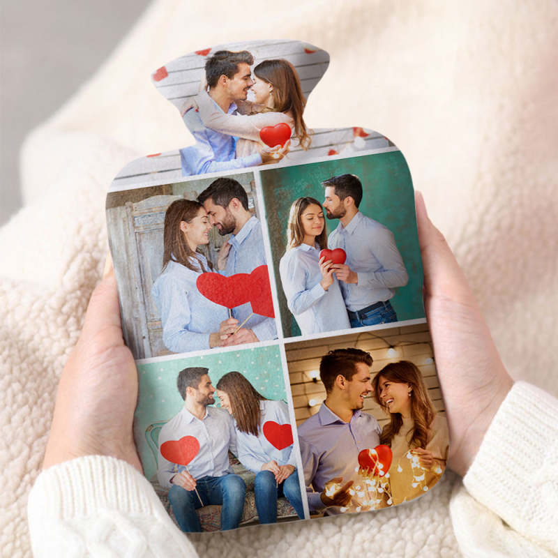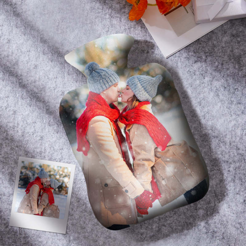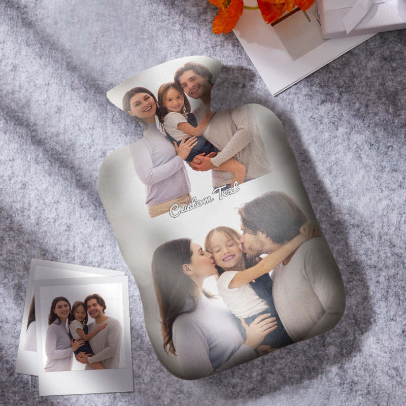 Luxury soft fabric hot water bottle cover printed with your photos to the front and back of the cover and comes with a free rubber hot water bottle to keep you warm at night. Beautifully soft and gentle to touch, you'll be ushering on the cold weather just so you can use your personalised hot water bottle with cover.