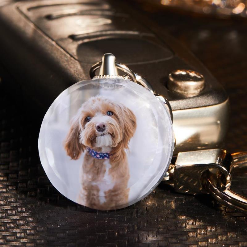 Custom Photo Keychain Crystal Keychain Two Pictures Round Shaped