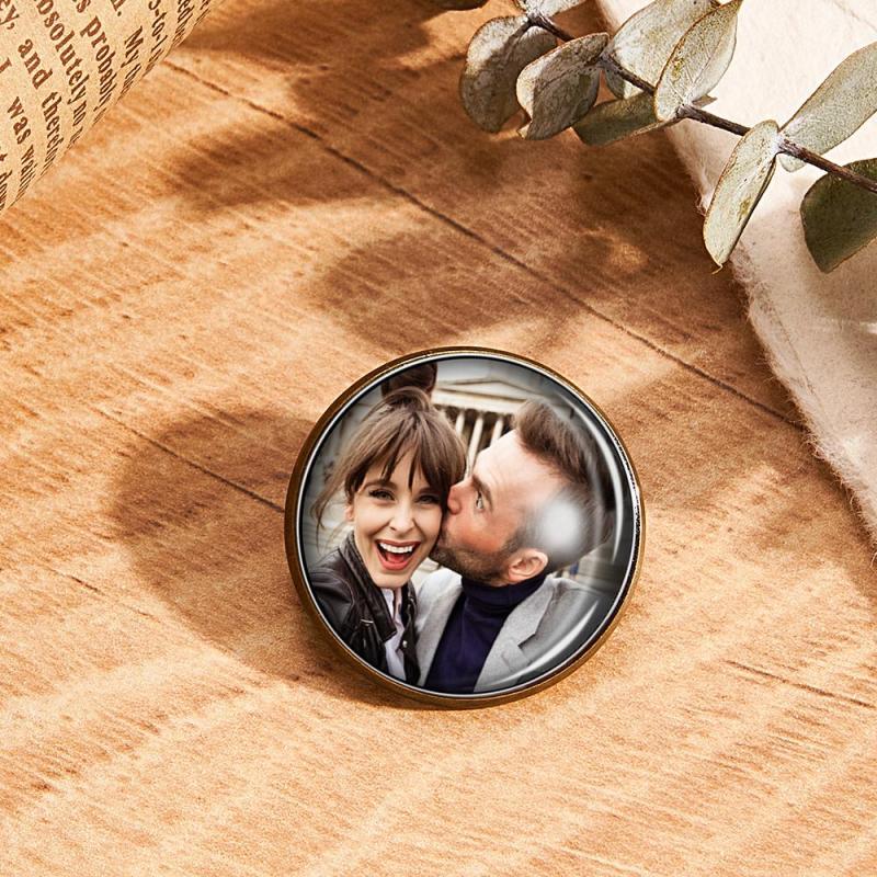 Custom Photo Lapel Pin Vintage Circle Brooch Gift For Man