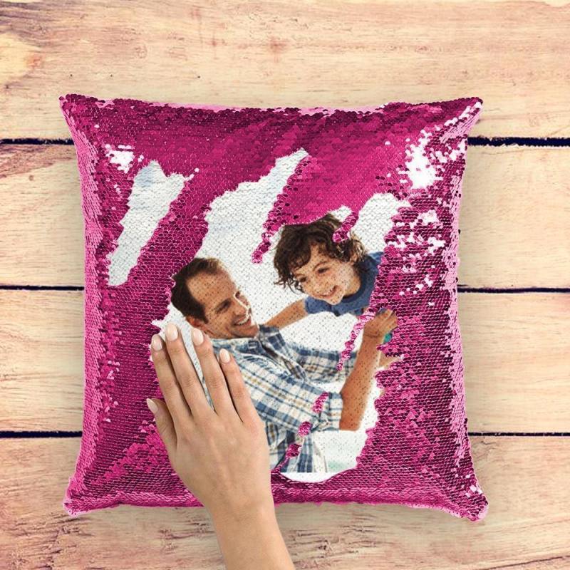 All pillows have been printed with non-toxic based ink on cotton fabric and stuffed with Polyester Fiber Balls. Polyester Fiber Balls - non-toxic and environmentally friendly material. Today it is one of the best fillers for parts of upholstered furniture, blankets, pillows and soft toys. This funny face and pet photo pillow is designed as a perfect gift for birthday, anniversary, Christmas, and more memorable days. We use 104% high quality spun polyester and high resolution printing technology to produce the best pillow for you. The decorative pillow makes the perfect gift for your loved ones for any Holiday, Birthday, Anniversary, Graduation or just for yourself! Custom Photo Magic Sequins Pillow Pink Color Shiny Home Decor 15.75" * 15.75".