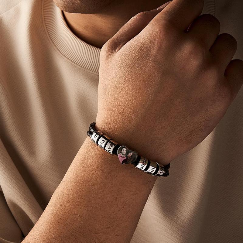 Custom Photo Name Bracelet Weave Leather Gift for Dad