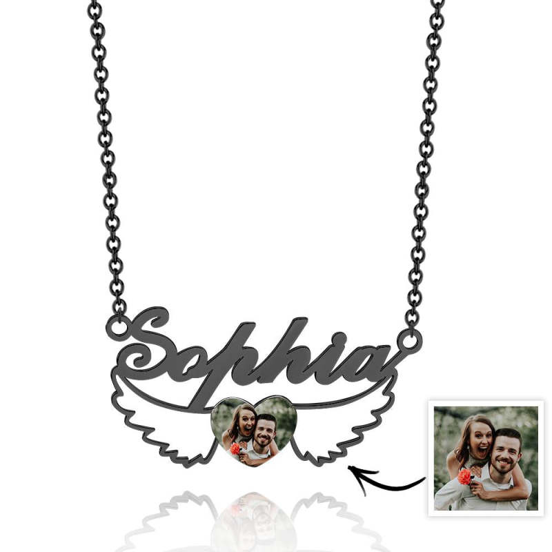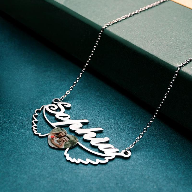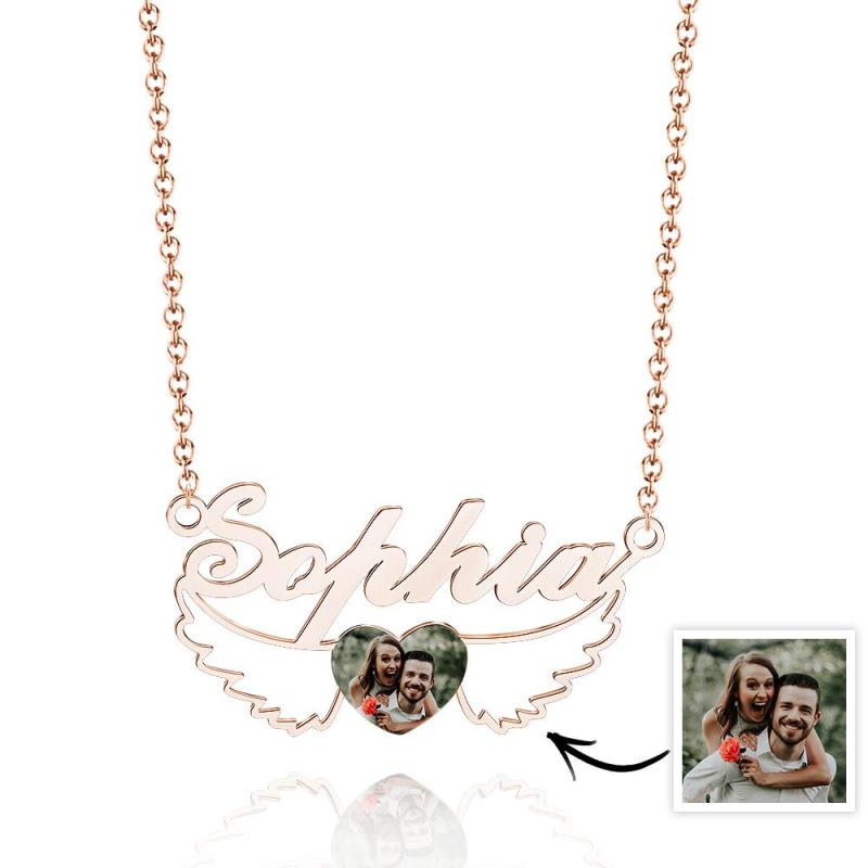 Custom Photo Name Necklace Heart Wings Couple Gifts