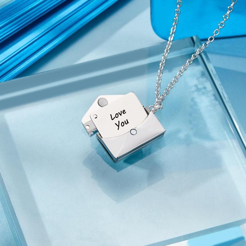 Crafted with high-quality materials, this necklace can be personalized to suit your preferences. Choose a special photo to be delicately engraved onto the elegant envelope-shaped pendant. The envelope design is not only chic but also functional, opening up to reveal a secret message, allowing your affection and thoughts to be shared as if through a private letter, known only to your special someone.