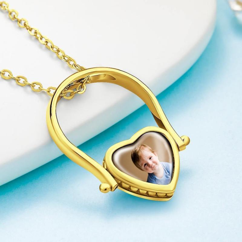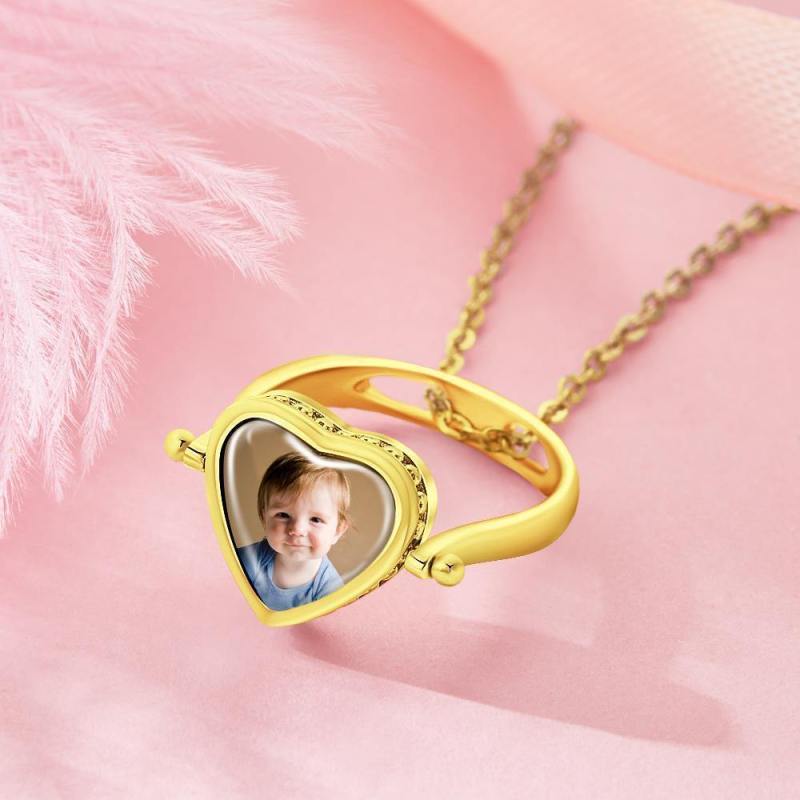 Custom Photo Necklace, Photo Ring Couple's Gifts Dual-use (Ring Size 5#) 14k Gold Plated Silver