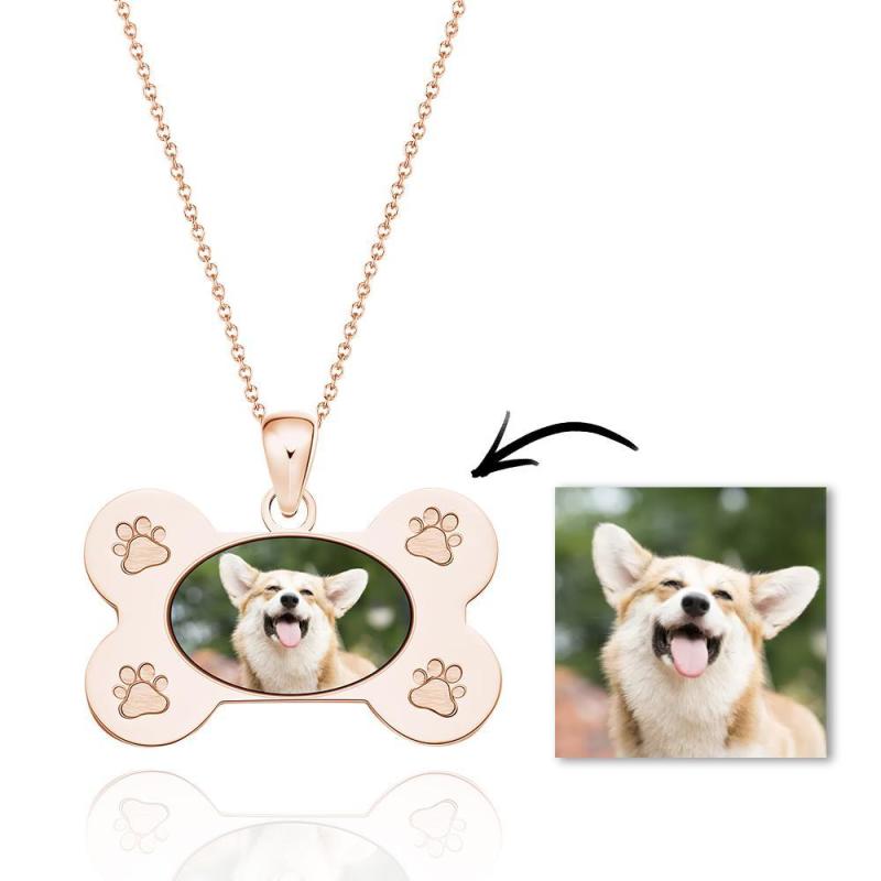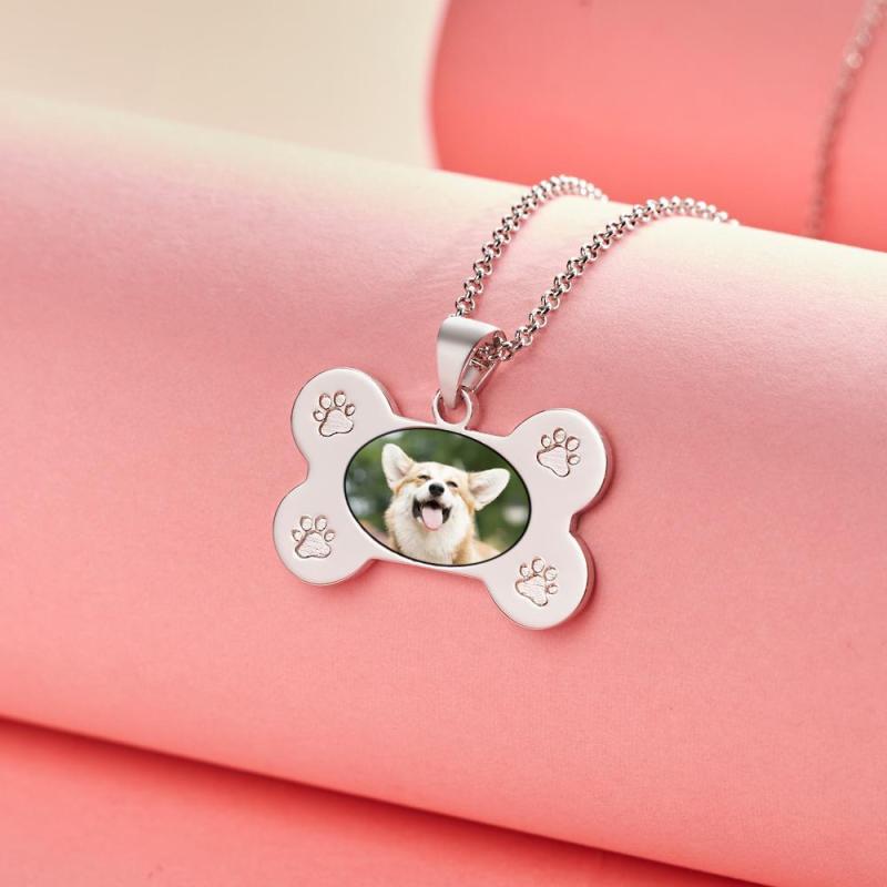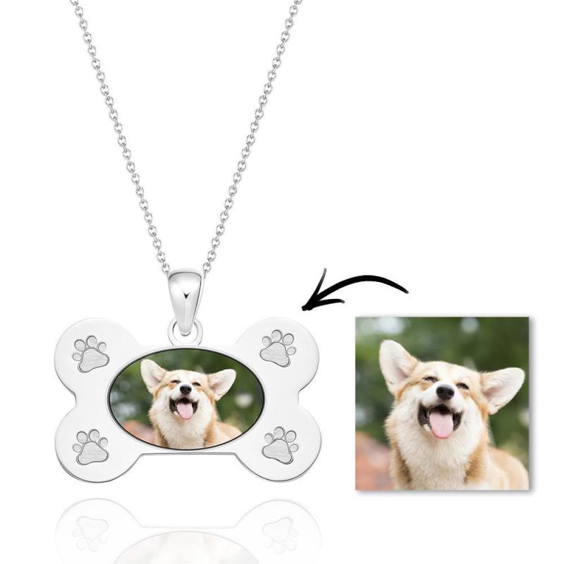 Custom Photo Necklaces Dog Bone Photo Pendant with Small Footprints