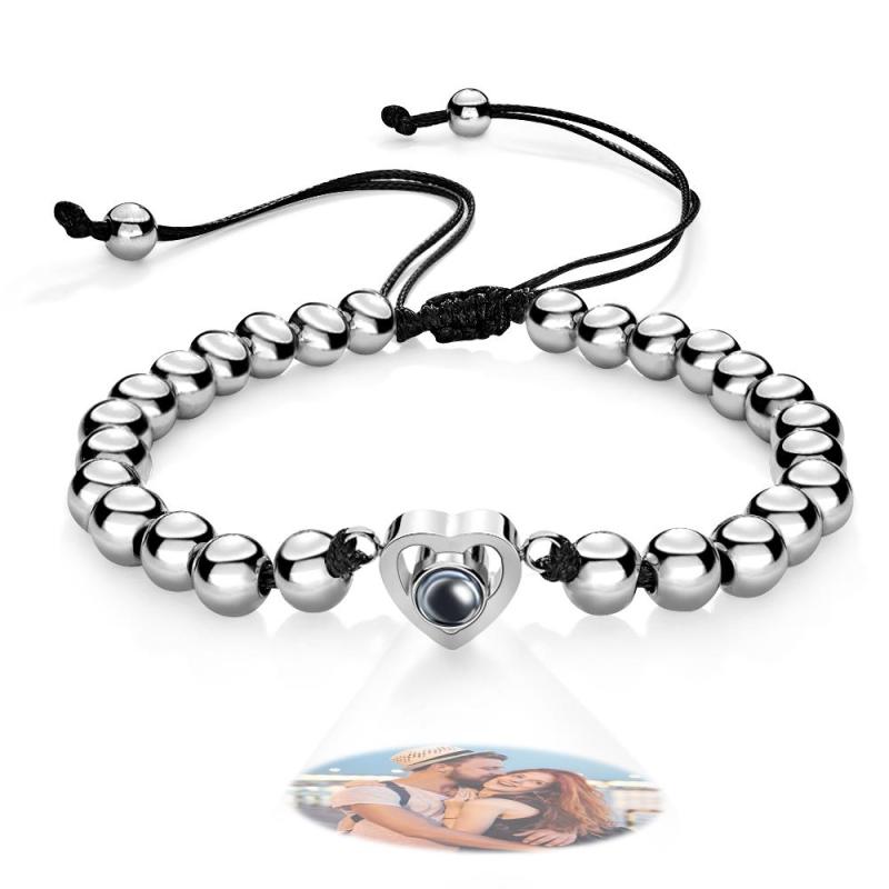 Custom Photo Projection Bracelet Personalized Heart Beads Adjustable Bracelet Gifts For Women