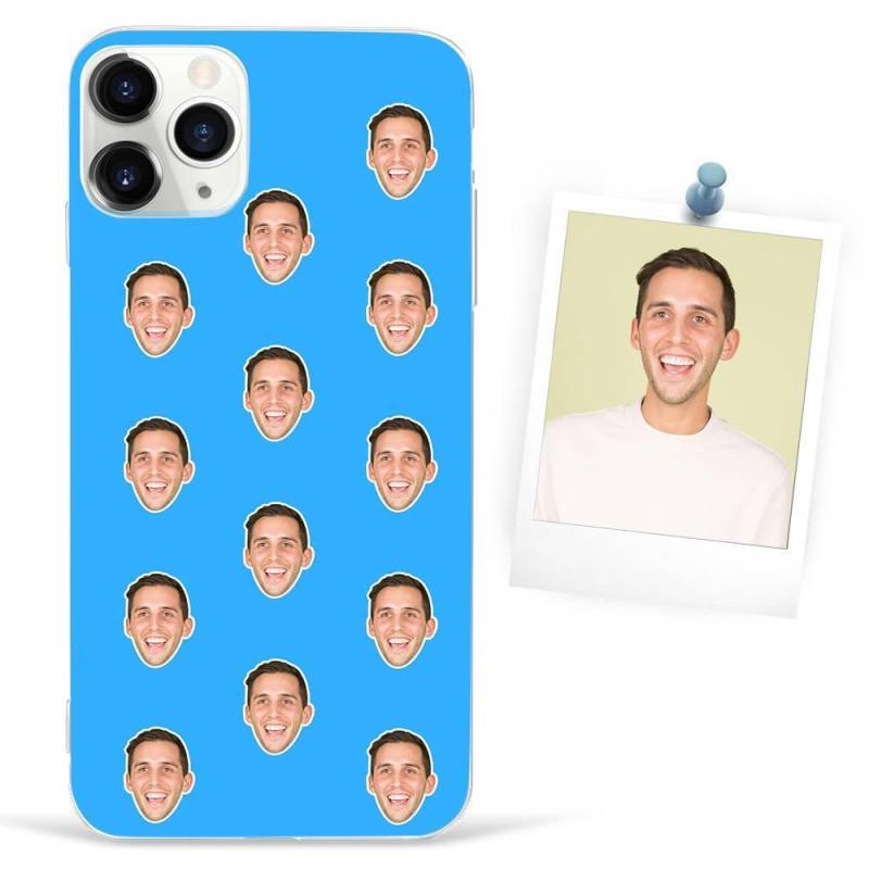 Custom Photo Protective Phone Case Soft Shell Light Blue Mesh Face - iPhone Case