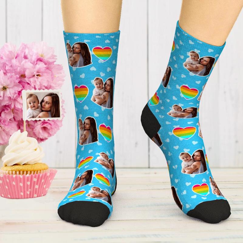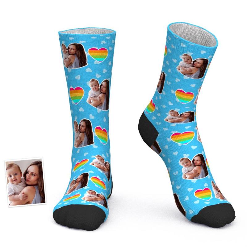 This sock can customize the picture. You just need to upload the high-definition picture to the web page, and we will make it carefully according to your picture. This sock is the theme of mothers day. This sock can more express your love for your mother. Socks are comfortable and soft to wear. Come and customize this meaningful sock!