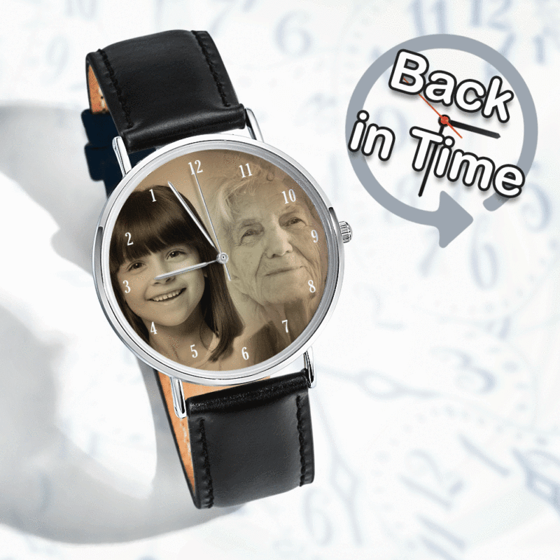 Year after year, time goes on and on. Even in old age, I still remember your childlike appearance. Carry your love, with one of our memorial watches. You may not be able to turn back the hands of time but this watch makes us think we can stay together.Upload two photos, young and old, becomes an eternal contrast and memory. Customize a special gift for the elderly.This is a magical and interesting watch.The pointer are backward.Counter clockwise pointer for people who like to be a bit different!Water Resistant, anti-freezing, anti-wear. and tightly sealed dial guarantees that your photo will not fade for 10 years.Easy customization, make your photo watch in minutes.