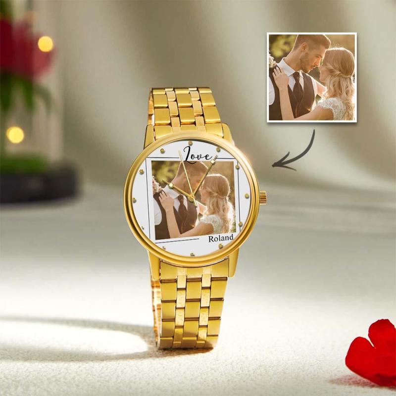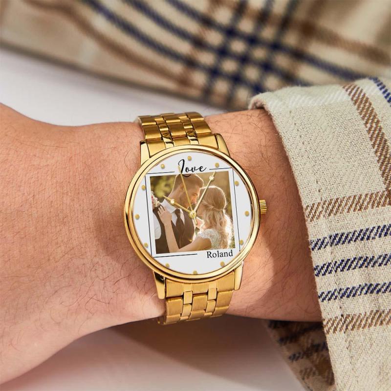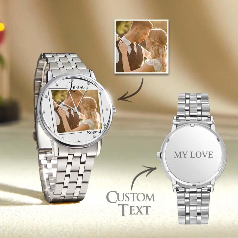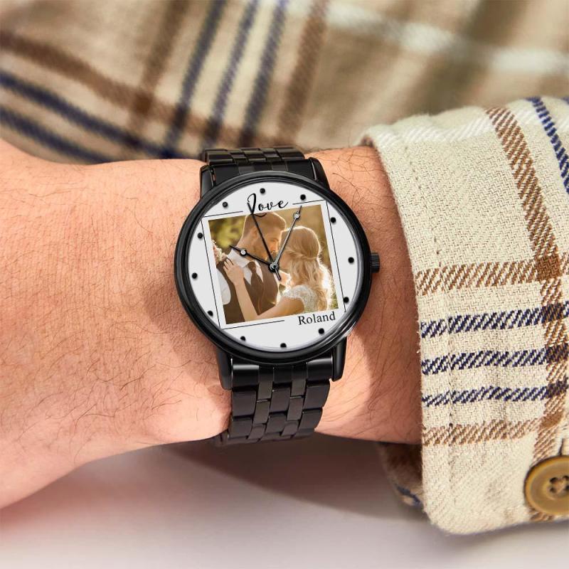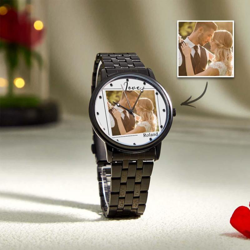 Surprise your loved one with a custom photo watch which is purely custom made to fit any personality. The image of design is directly printed onto the inside of watch surface. Once you place an order, you'll be able to preview how it will appear on the watch. Please do remember high resolution picture will come out better than the preview. This custom photo watch cannot be refunded once we start the making process. A custom photo watch always makes a great gift and will never go out of style. Buy yours today! Engraved Men's Black Alloy Bracelet Photo Watch 38mm.