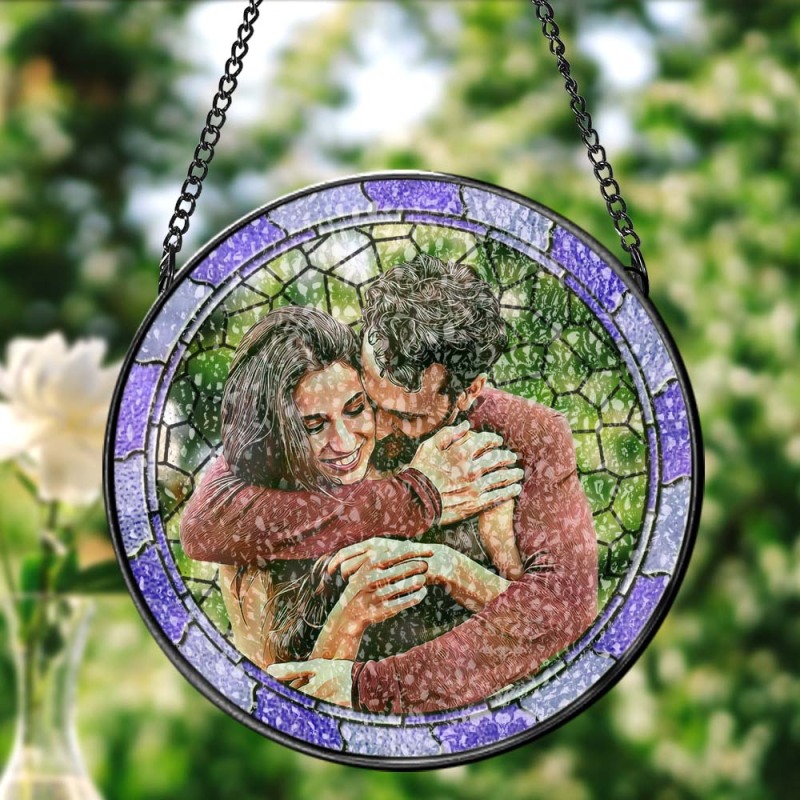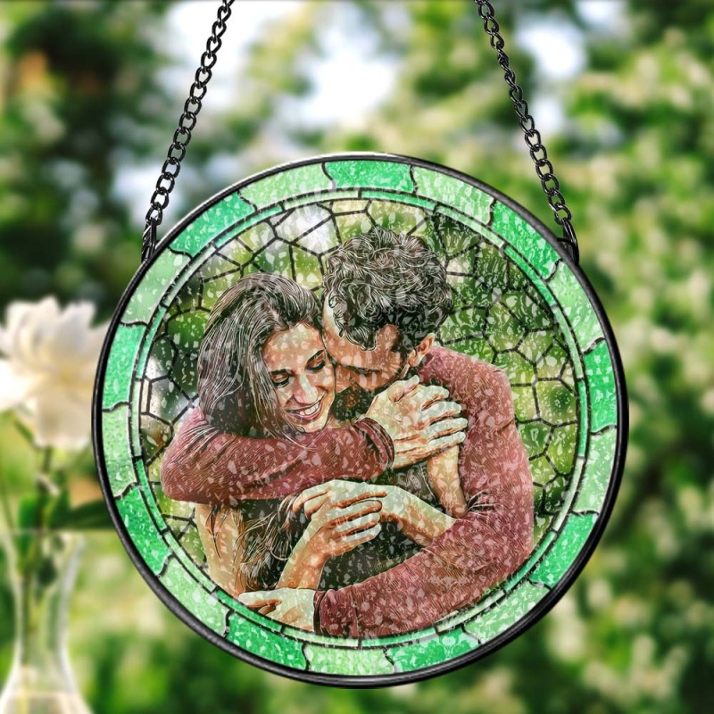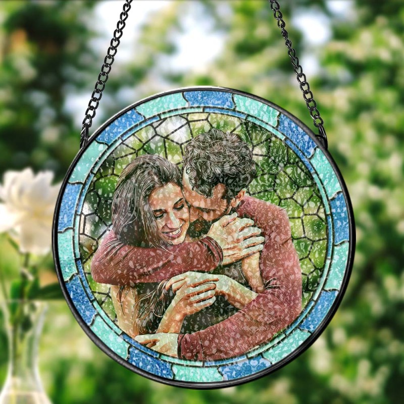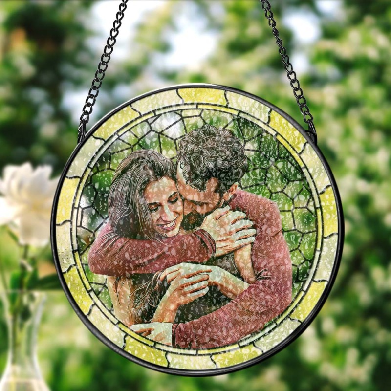 Custom Photo Where There Is Love There Is Life Couple Personalized Window Hanging Suncatcher Gift For Husband Wife Anniversary