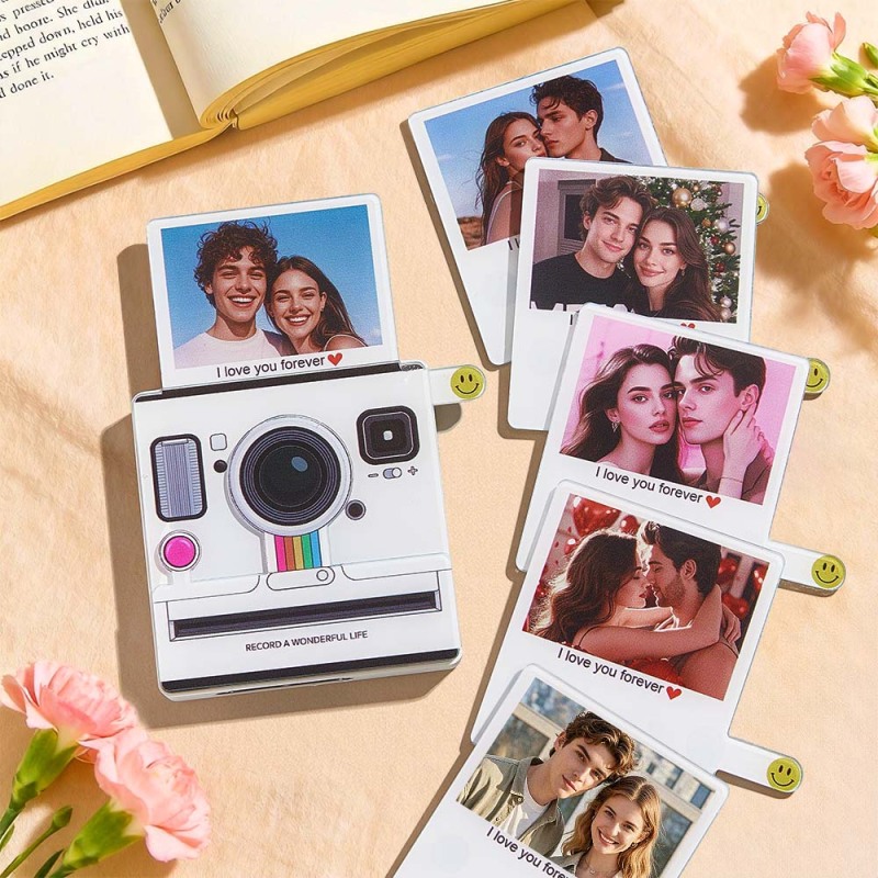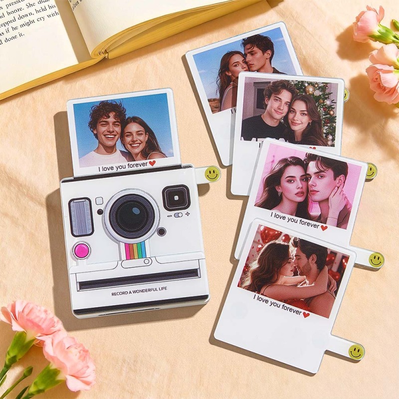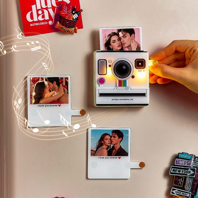 ring your memories to life! This interactive Polaroid-style fridge magnet lets you upload your favorite photo. Slide the small lever at the bottom right to reveal the photo while automatically playing your chosen music. The magnet also lights up while playing, creating a magical effect. Choose 1 to 6 songs to personalize your experience – a perfect gift for birthdays, holidays, or any special occasion!