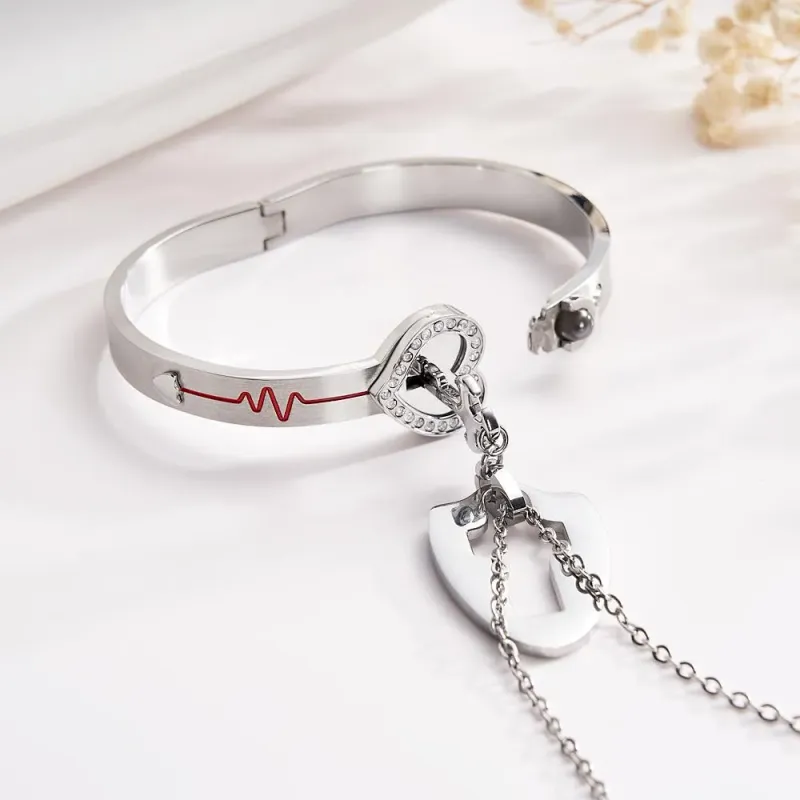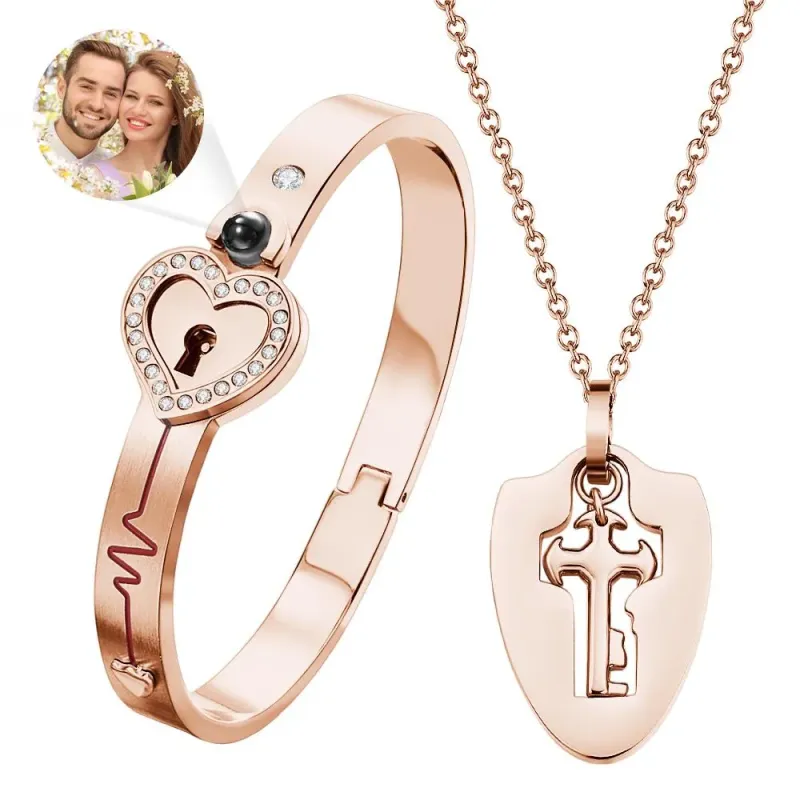 Custom Projection Couple Bracelets & Necklace with Real Rose Bear Gift box Rose Shaped Necklace Gift Box Jewellery Gift Box