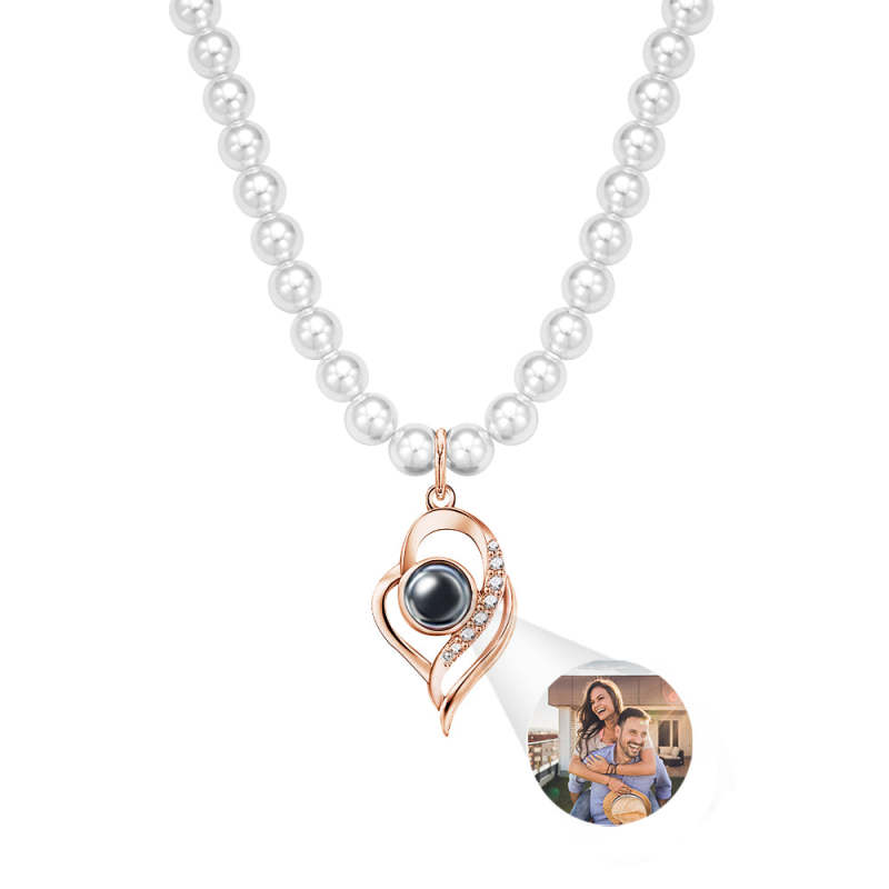 Custom Projection Necklace Double Heart Pearl Gift for Her
