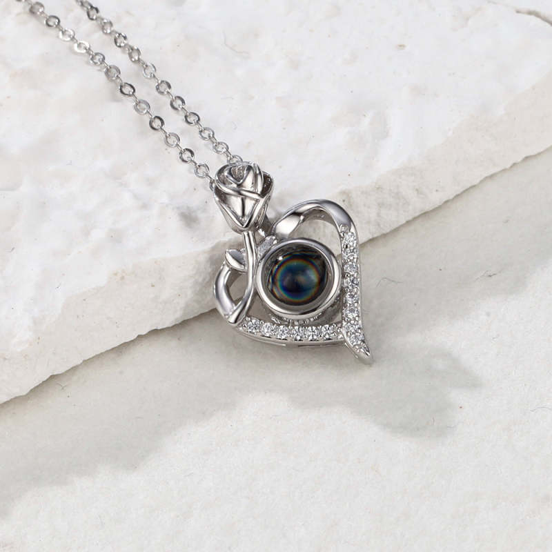 Custom Projection Necklace Rose Heart Photo Necklace for Her