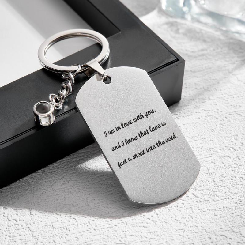 Custom Projection Photo Engraved Keychain Simple Couple Commemorate Gift