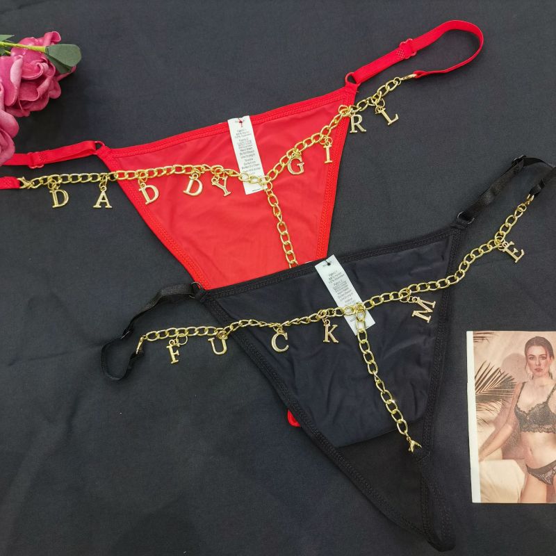 Personalized Rhinestone Letters: Customize your thong with dazzling rhinestone letters, allowing you to spell out your initials or a special message for a personalized touch.